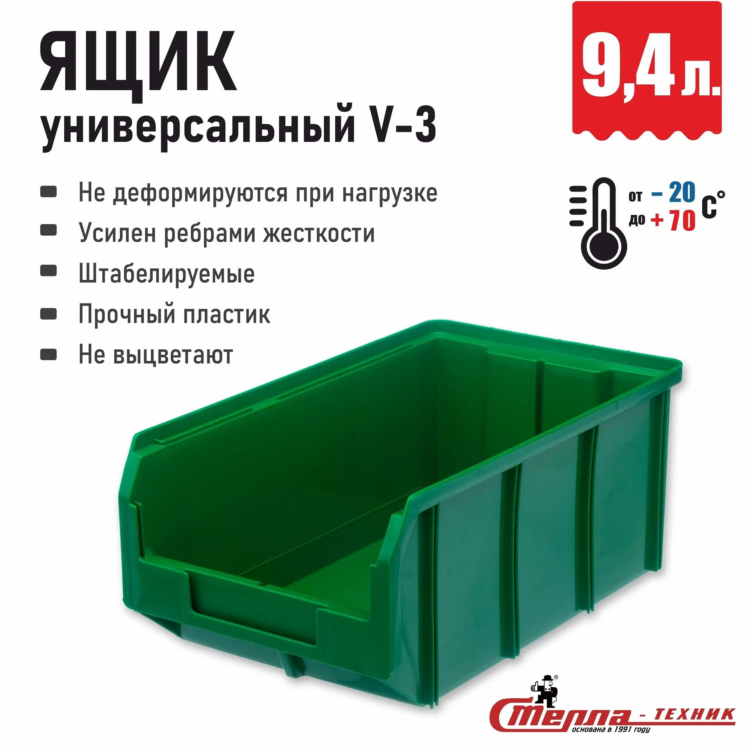 Складской пластиковый ящик, лоток для метизов зеленый Стелла-техник (341х207x143 мм), 9,4 л V-3-зеленый