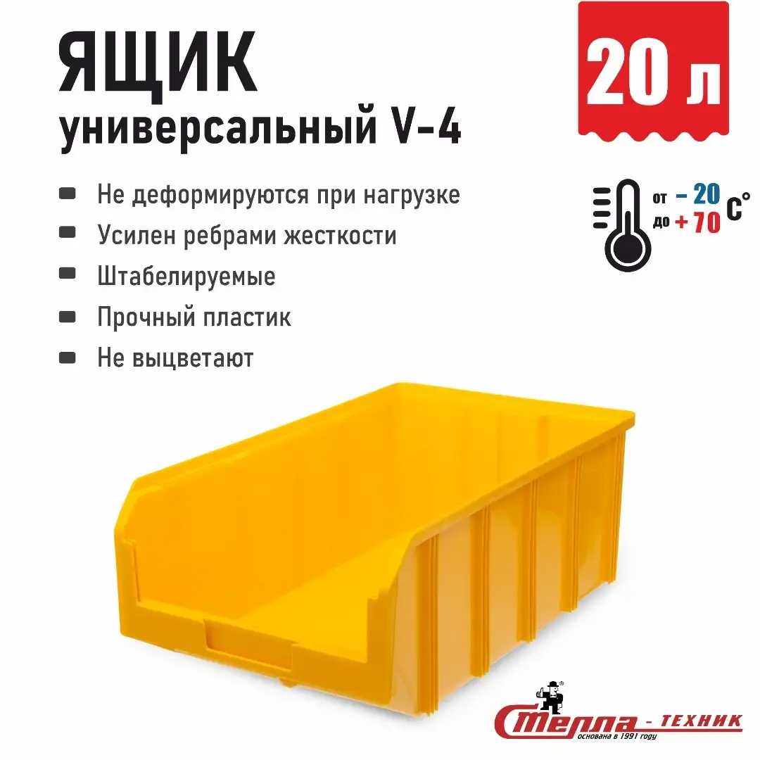 Пластиковый ящик, лоток для метизов желтый Стелла-техник (502х305х186 мм), 20 л V-4-желтый