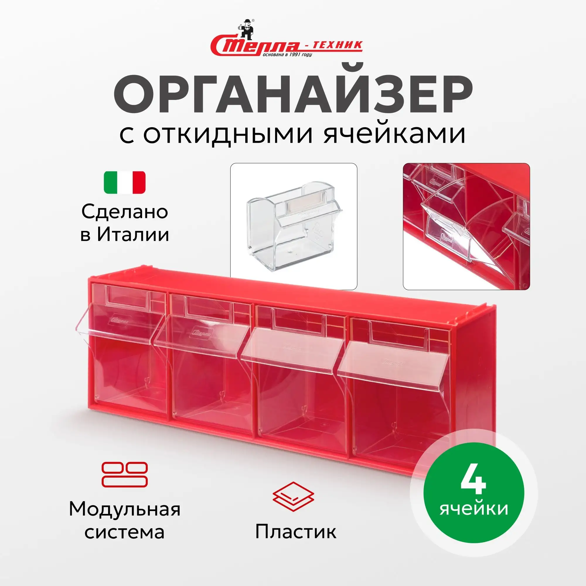 Короб откидной Стелла-техник 600х96х112 мм, 6 ячеек, красный F-600-6