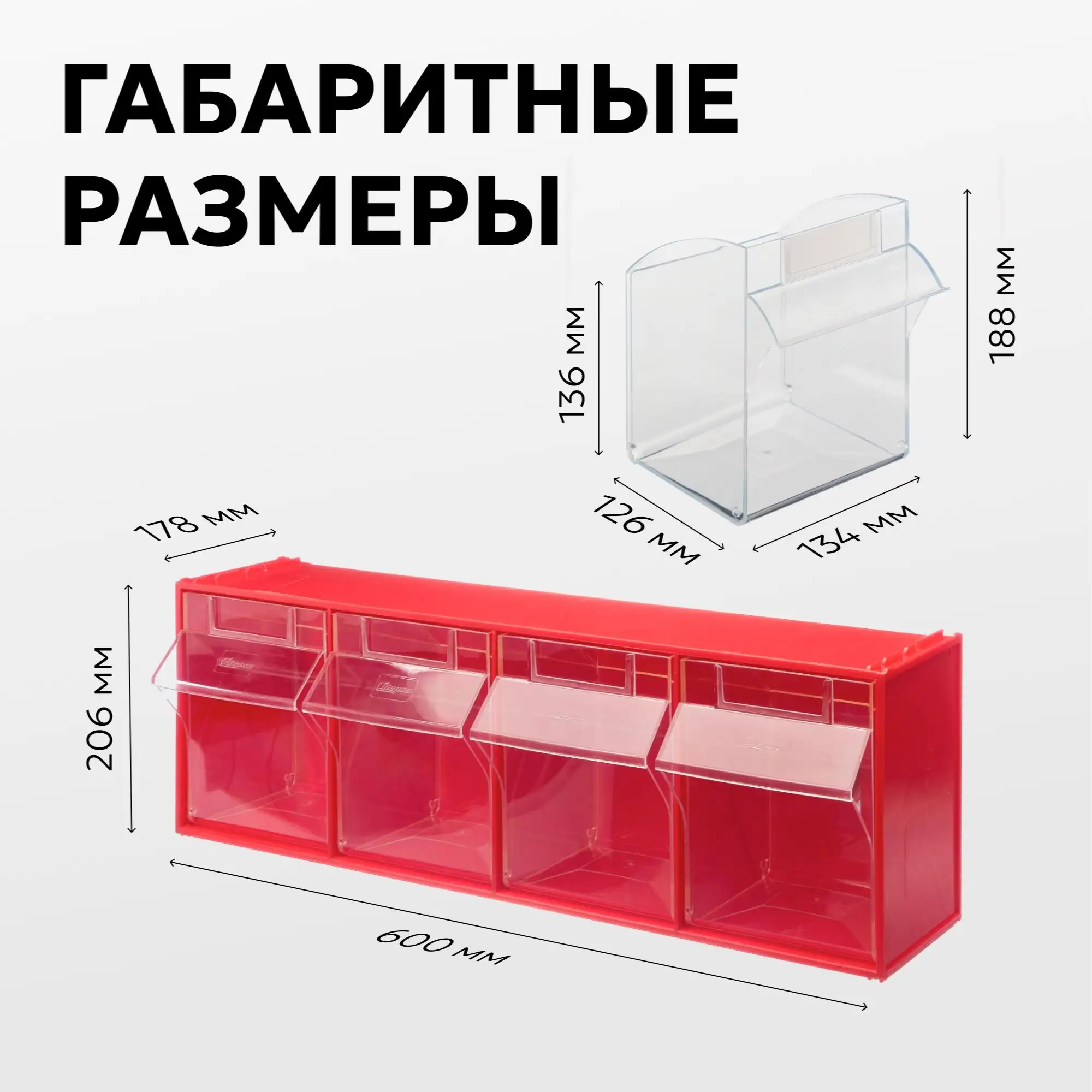 Короб откидной Стелла-техник 600х140х168 мм 5 ячеек, красный F-600-4