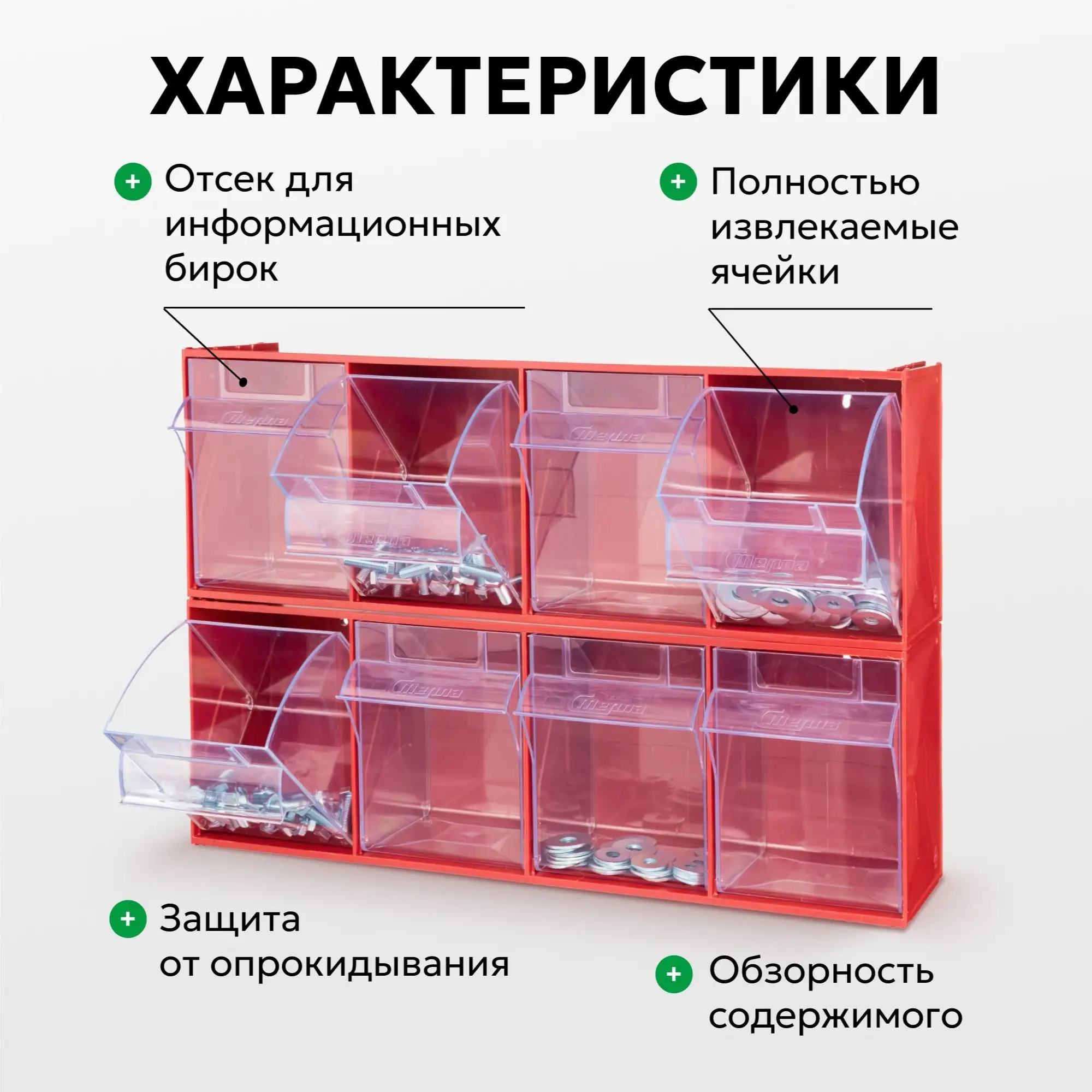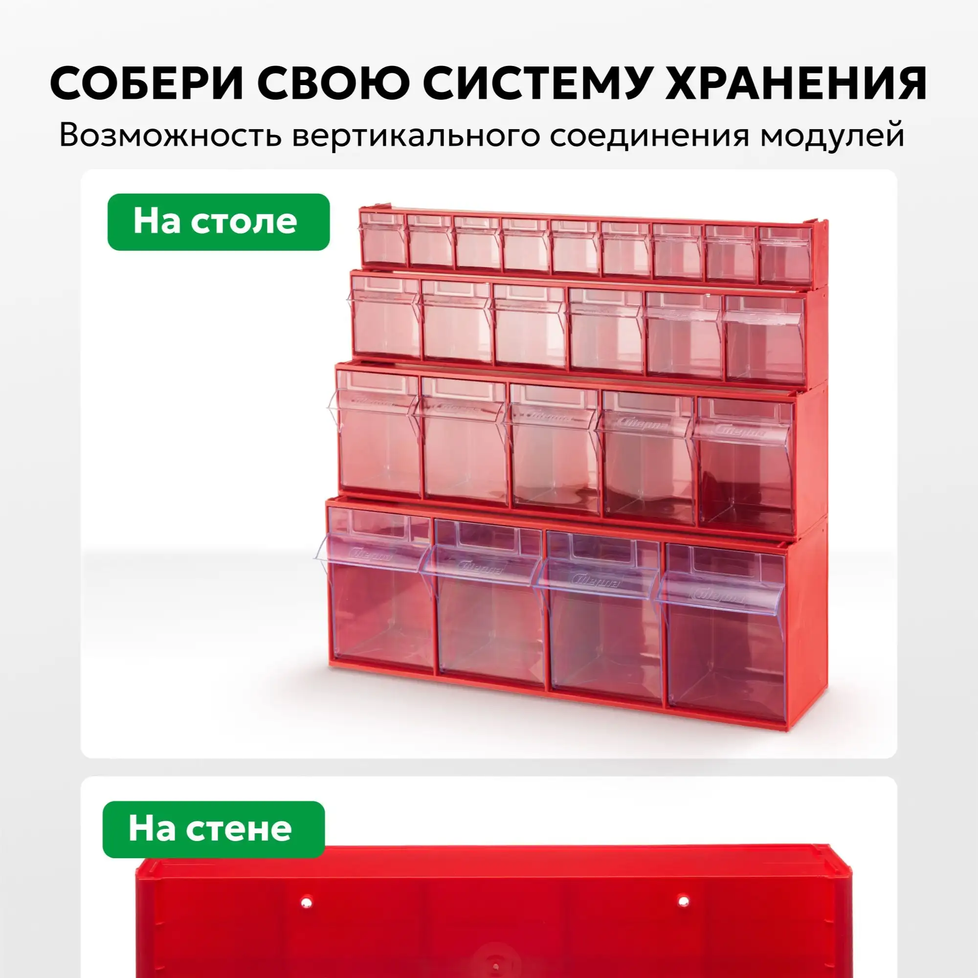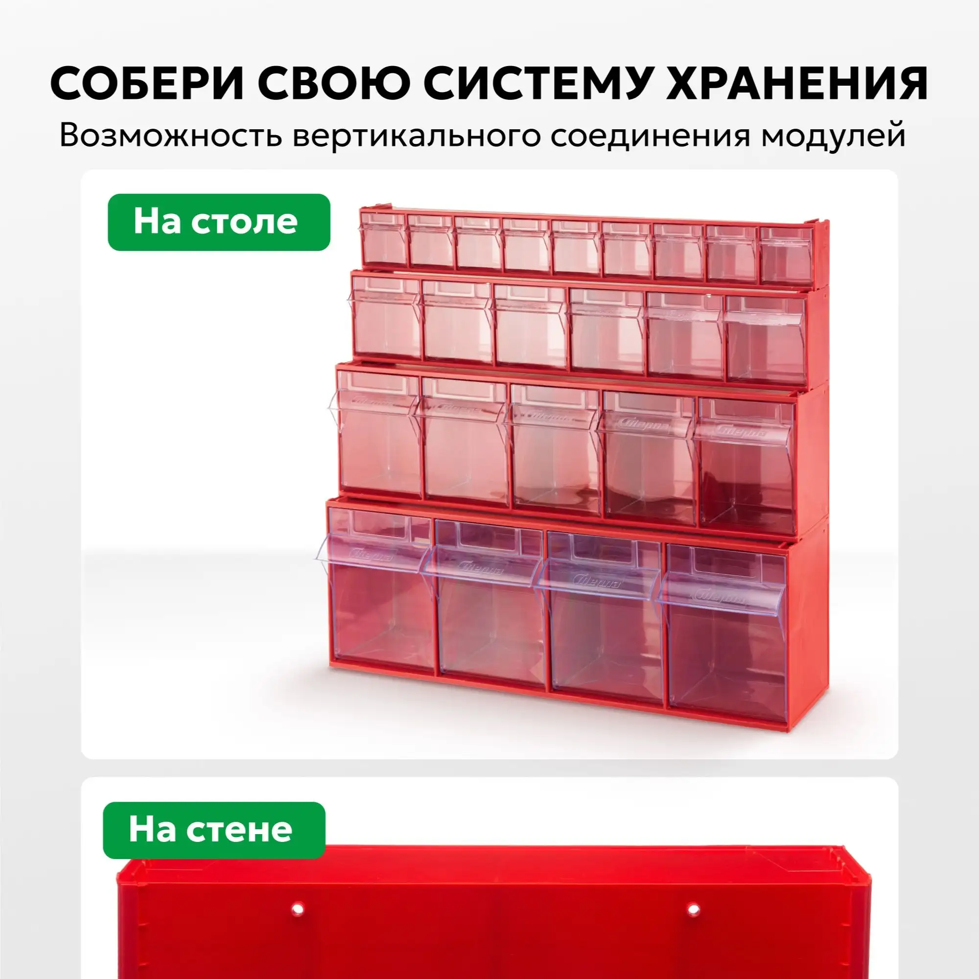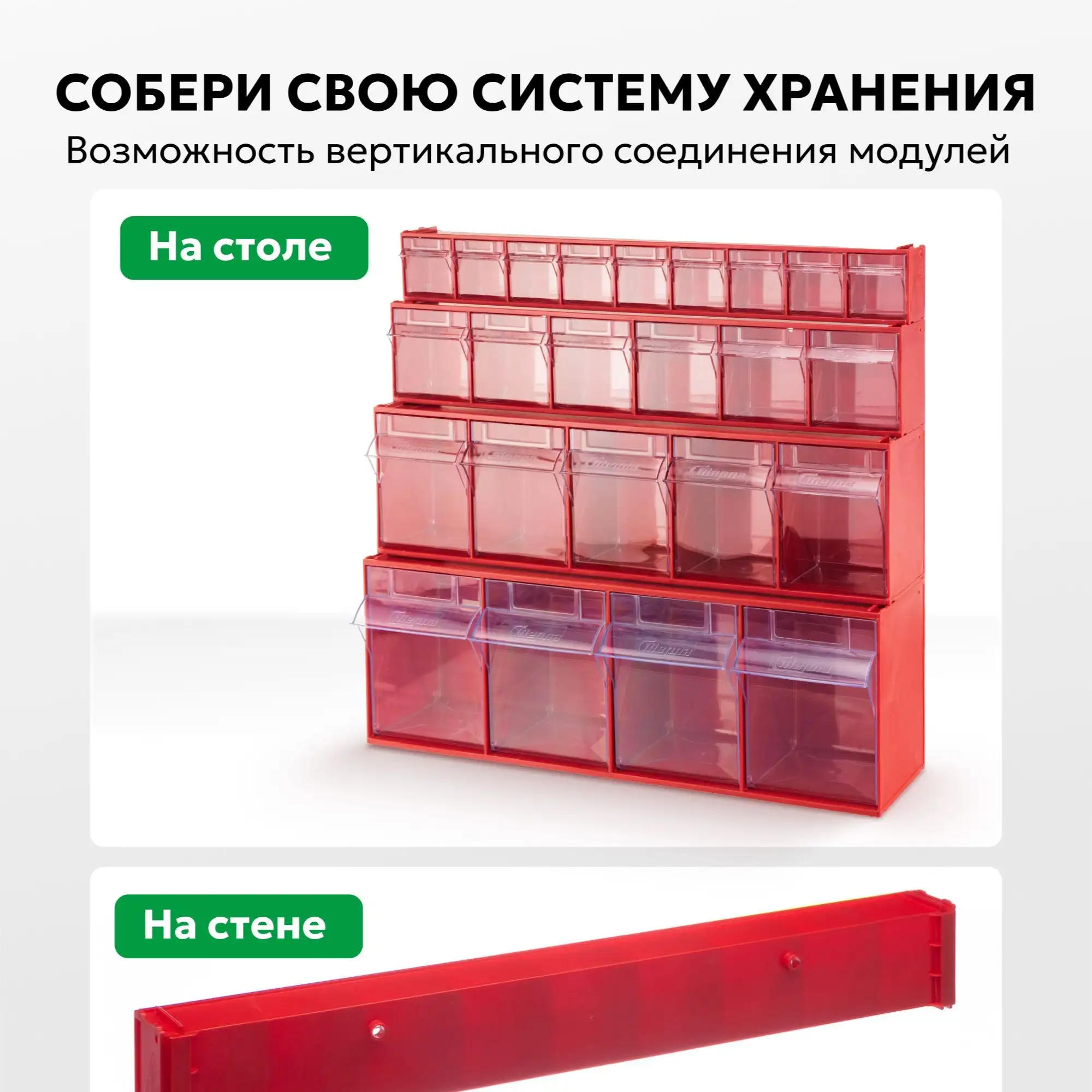 Короб откидной Стелла-техник 600х68х78 мм, 9 ячеек, красный F-600-9