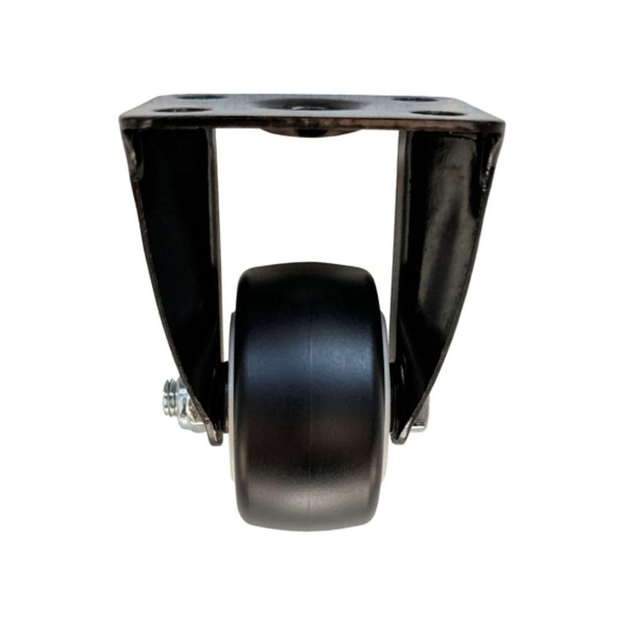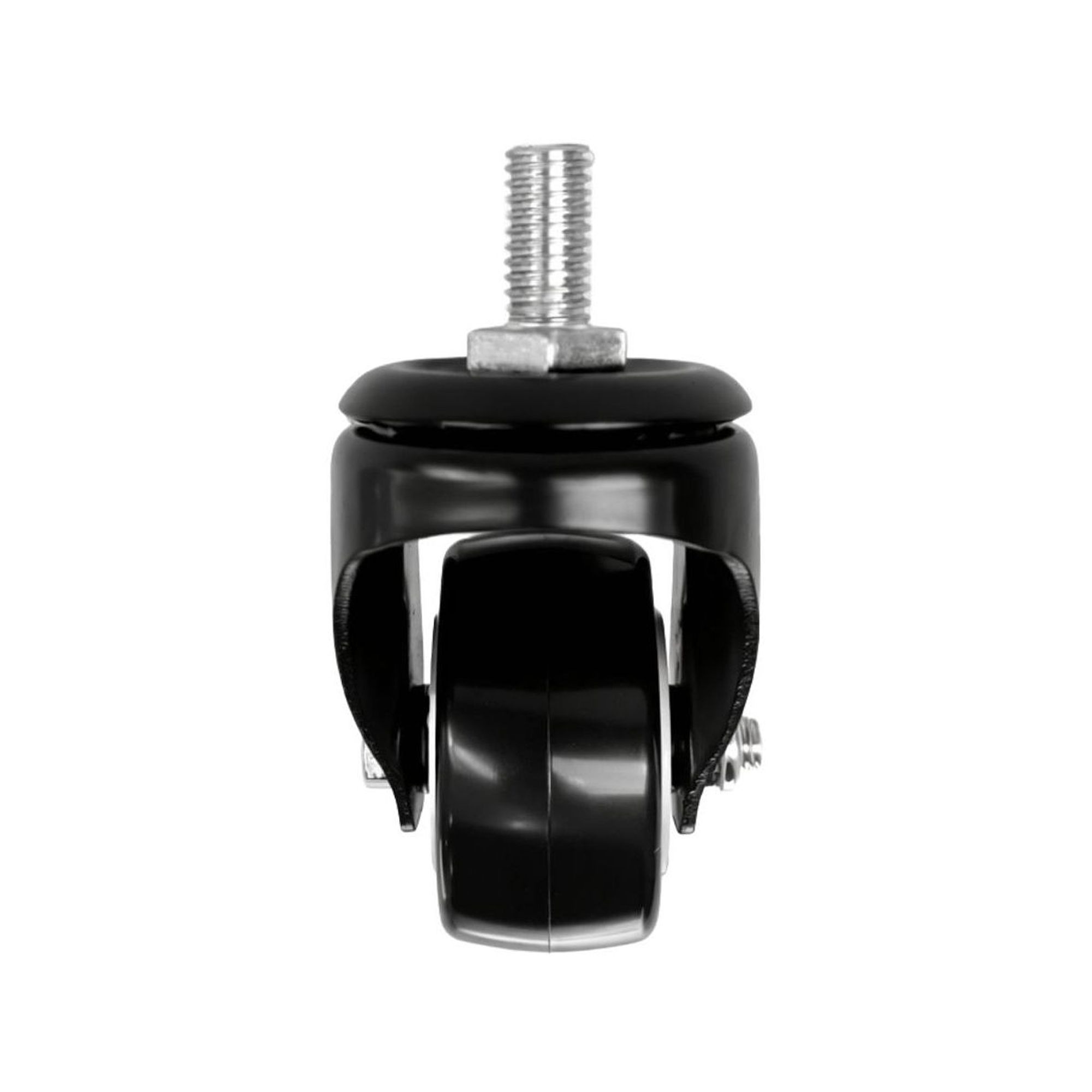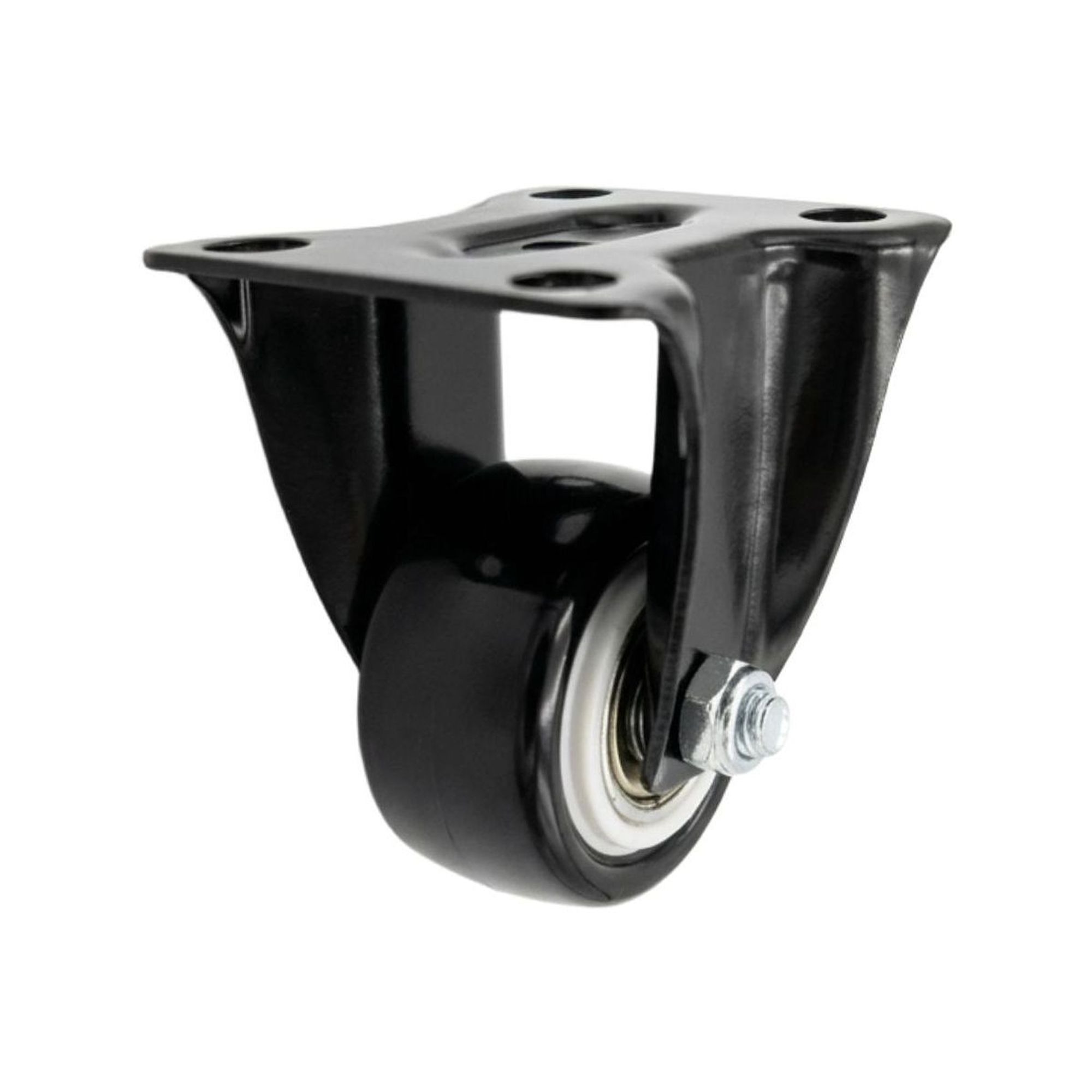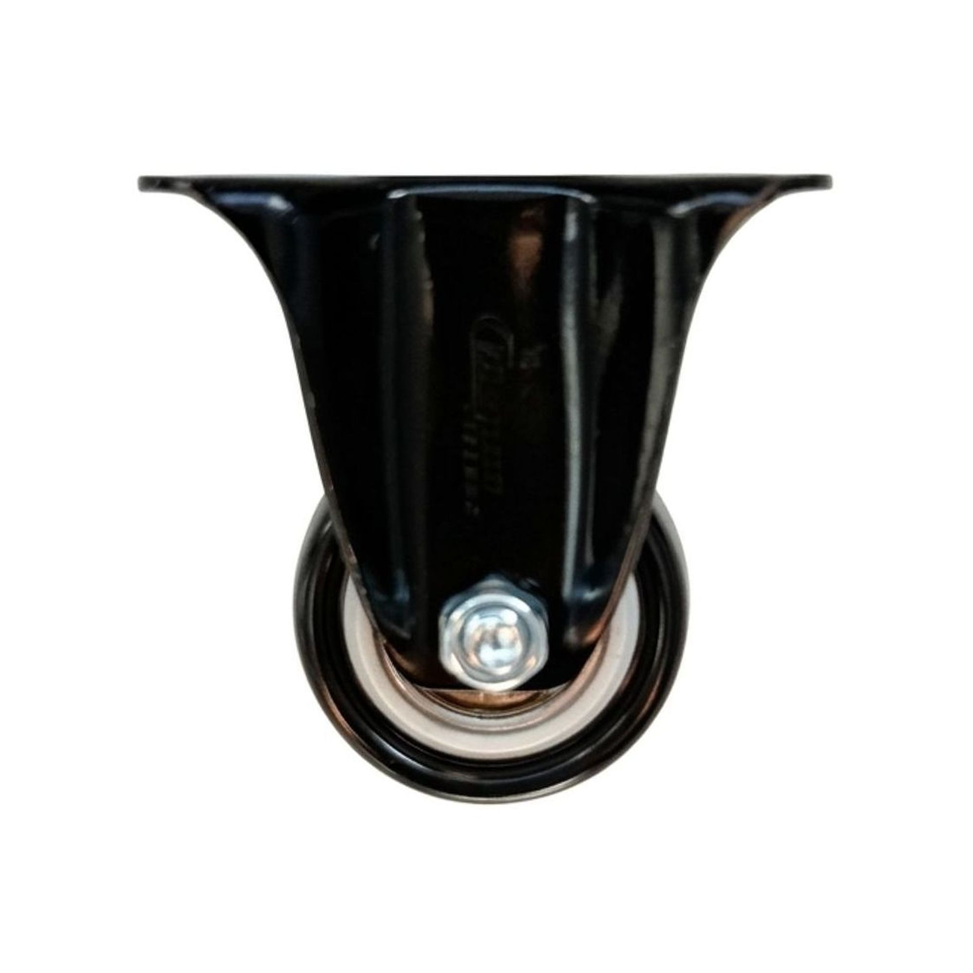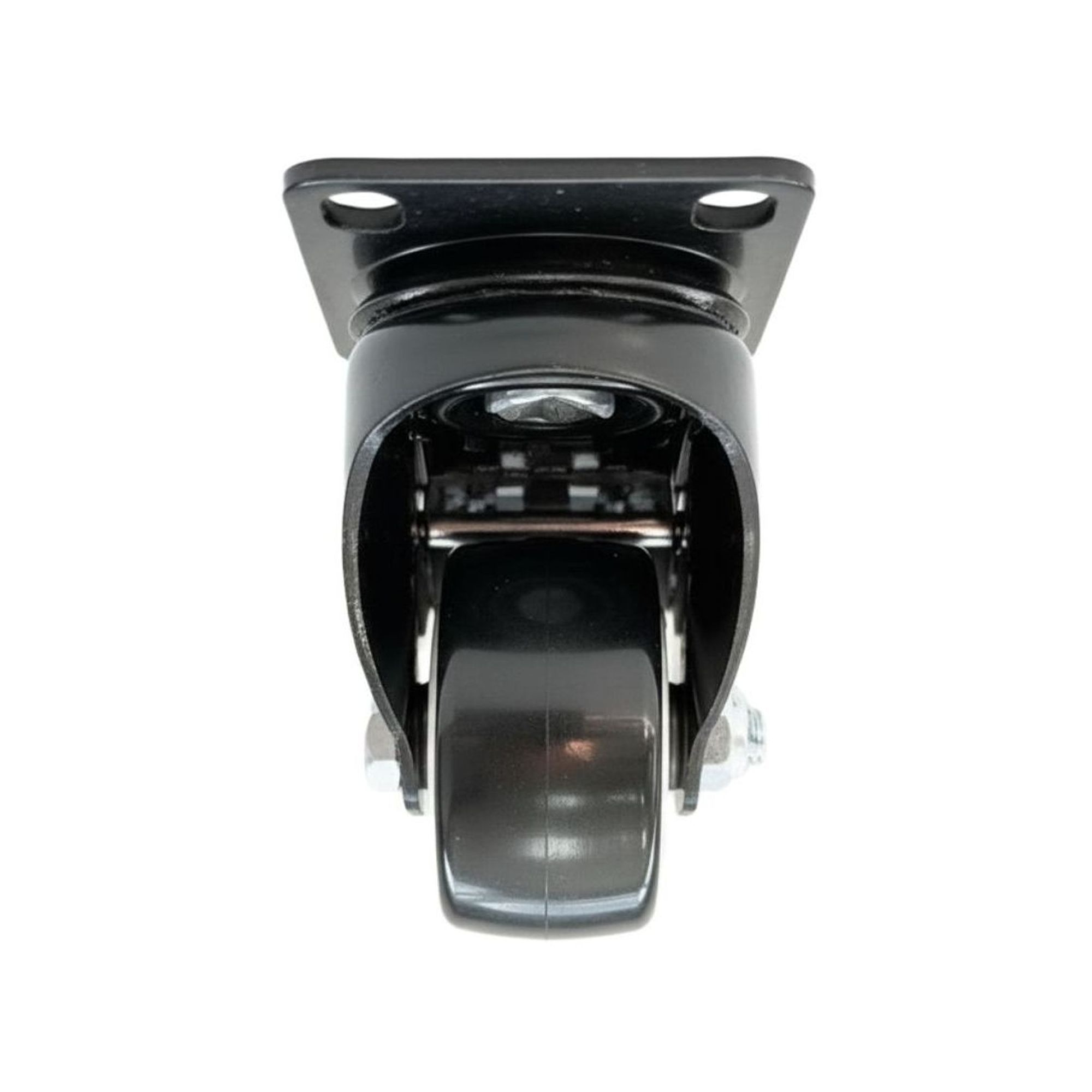 Колесо поворотное с тормозом с кронштейном из стали, покрытое качественной эмалью черного цвета. Контактный слой из ПВХ твердостью 95 Шор A. Основание: Полипропилен. Ступица оснащена двухсторонним шарикоподшипником.