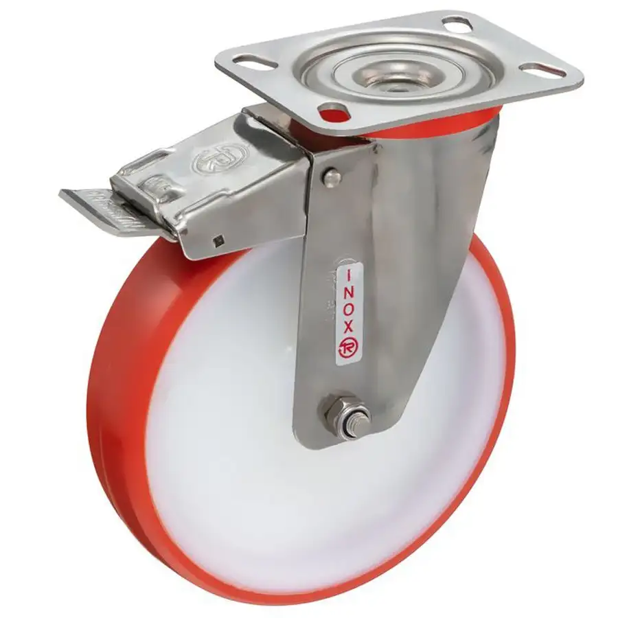 Колесо 100 мм, 200 кг поворотное с тормозом на НЕРЖАВЕЙКЕ Стелла-техник 5903-100