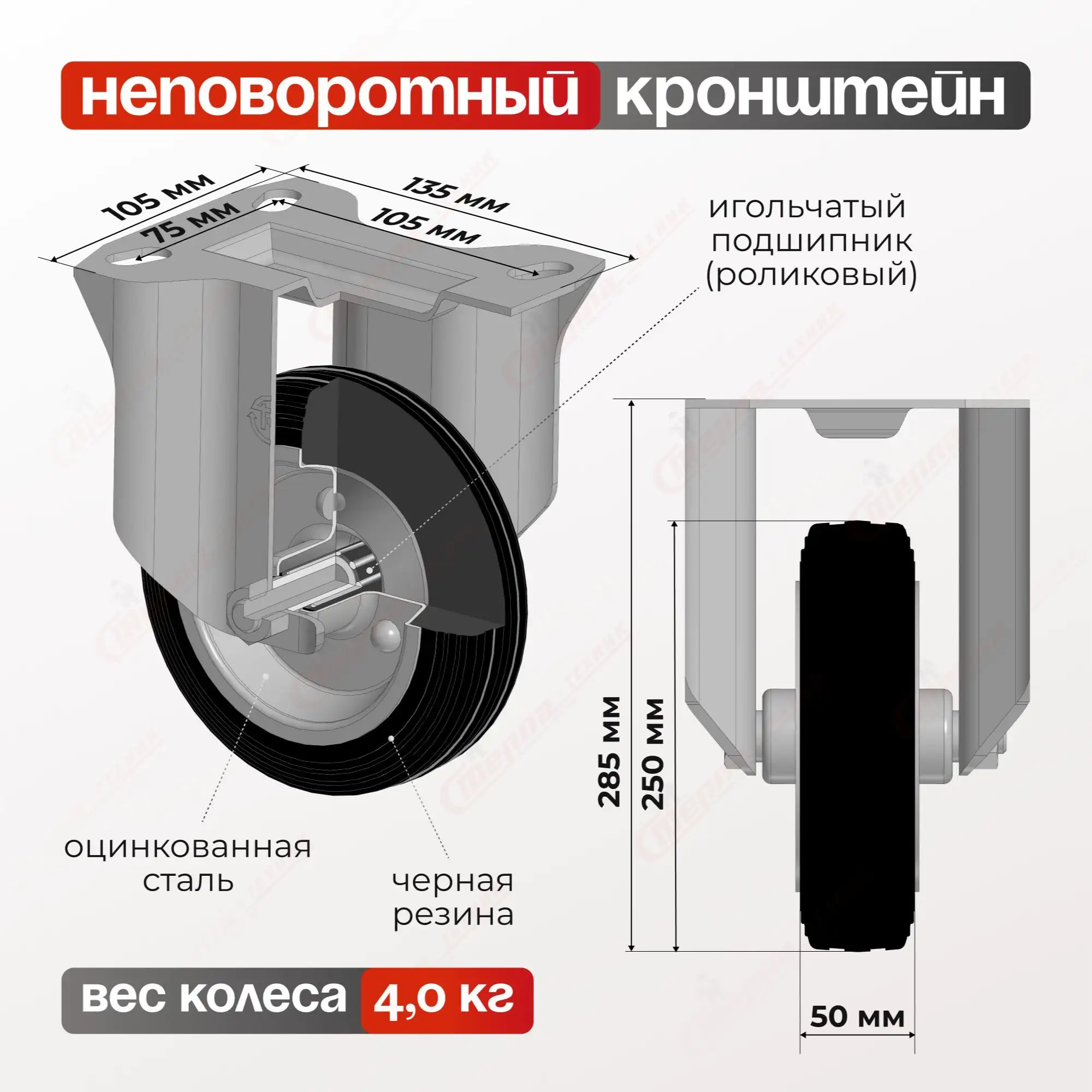 Колесо промышленное (250 мм, 210 кг) неповоротное Стелла-техник 4002-250
