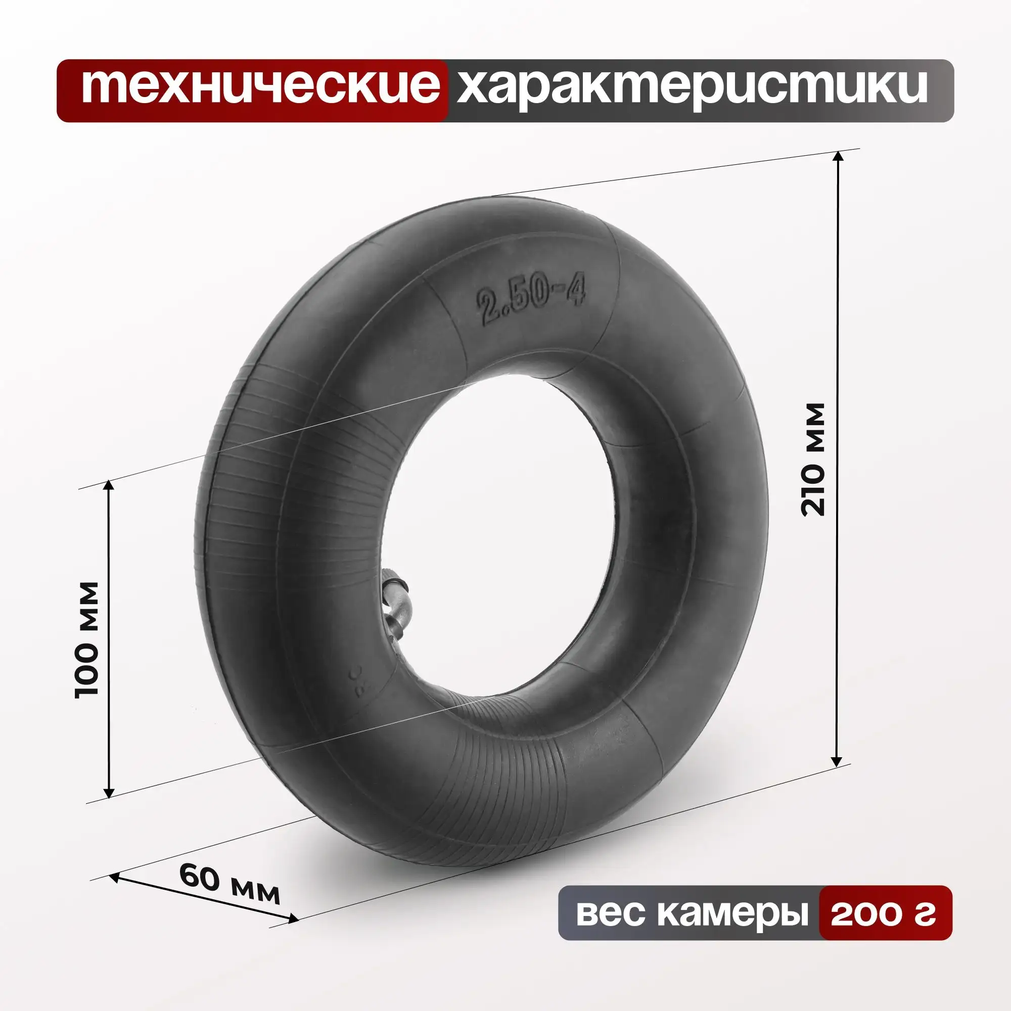 Камера для пневматического колеса 200 мм, 150 кг Стелла-техник PR200-2.50-4