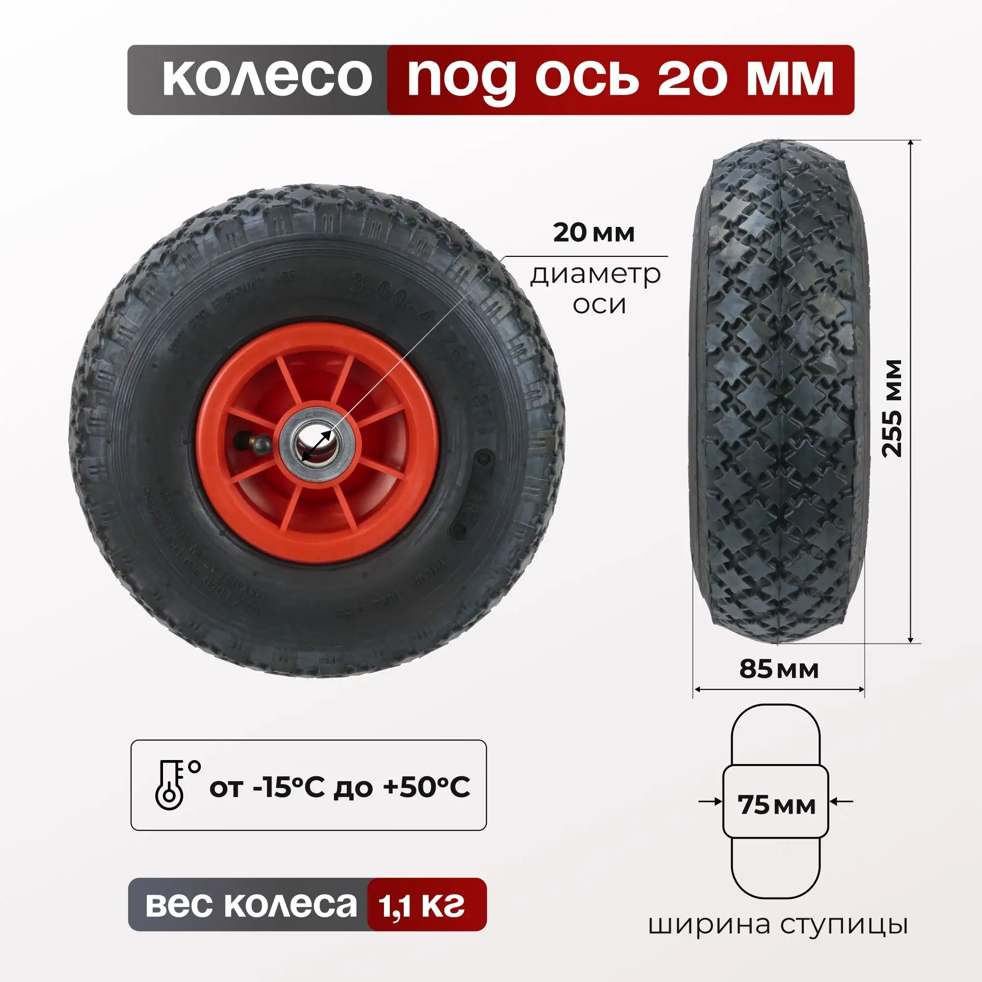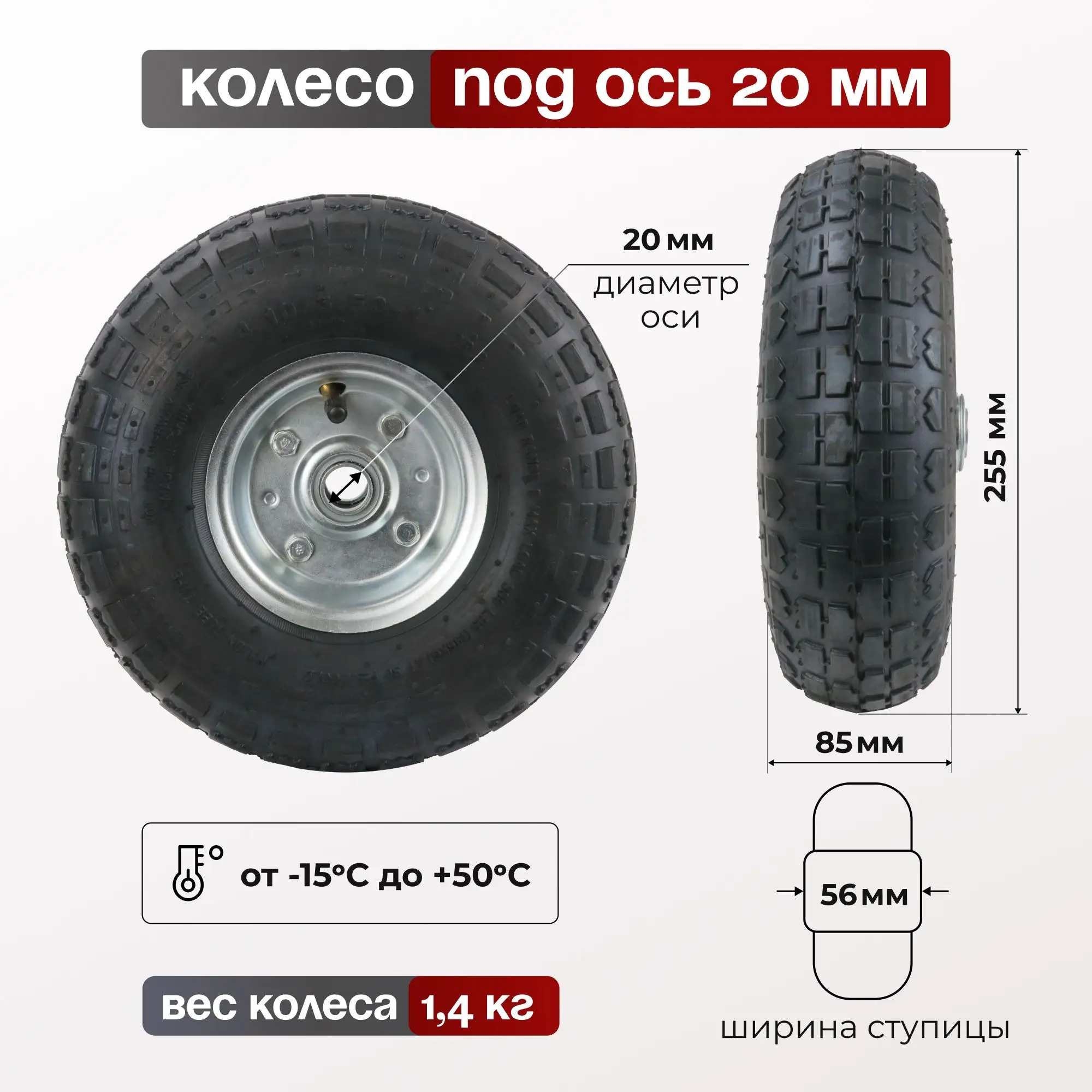 Колесо пневматическое (255 мм, 136 кг) под ось 20 мм Стелла-техник 1120-255-1