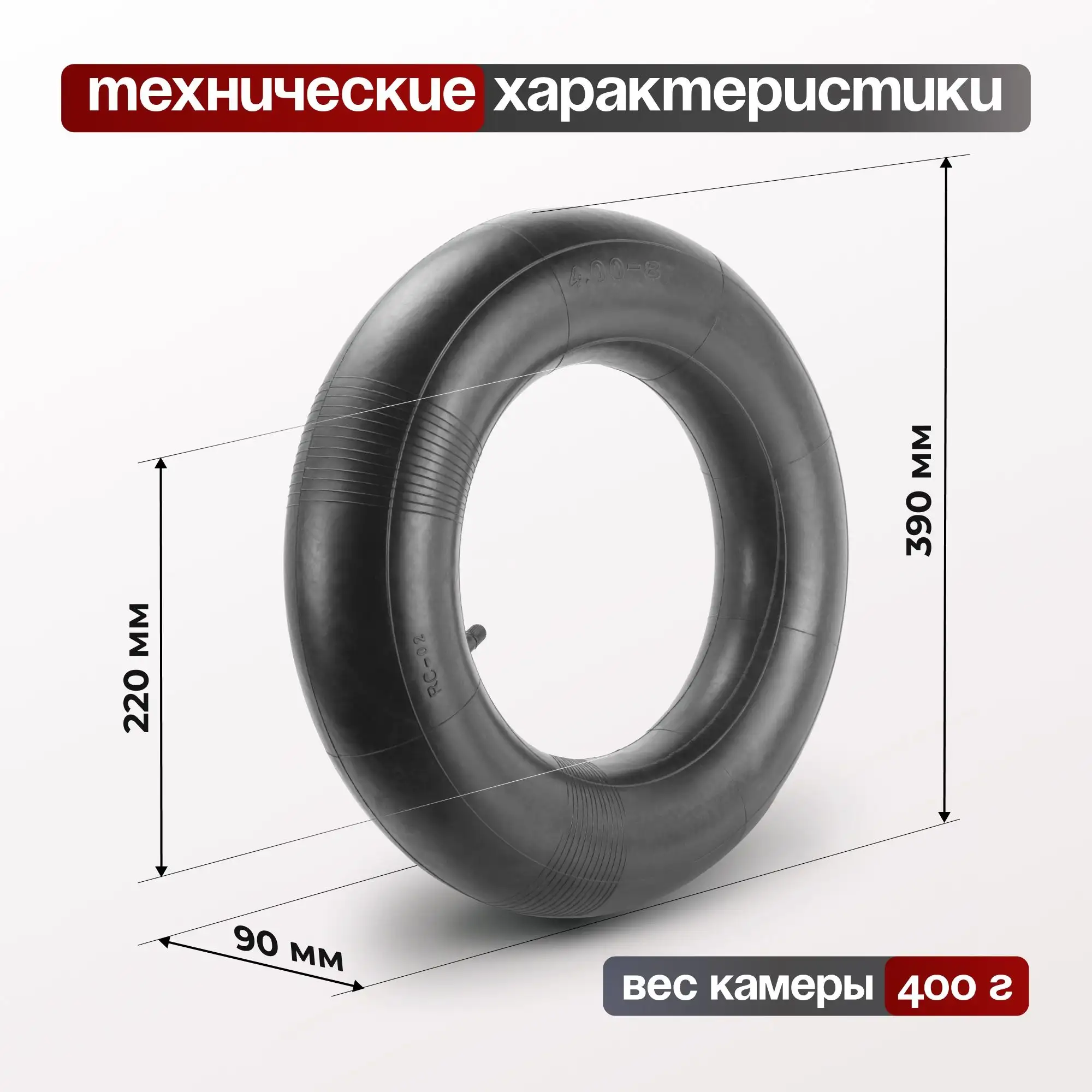 Камера для пневматического колеса 390 мм, 200 кг Стелла-техник PR390-4.00-8