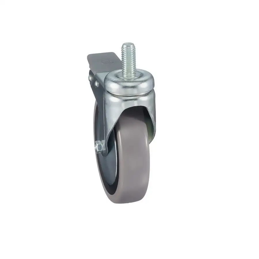 Колесо аппаратное (50 мм; 40 кг) поворотное с тормозом Tellure Rota, серая резина, сталь 389201