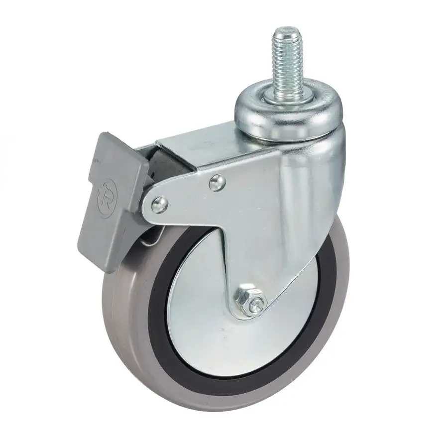 Колесо промышленное (125 мм; 80 кг) поворотное с тормозом Tellure Rota, серая немаркая резина / полипропилен 379102