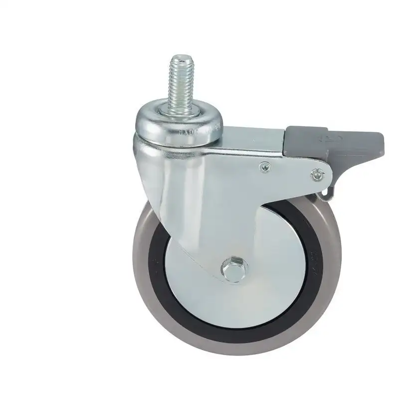 Колесо промышленное (125 мм; 80 кг) поворотное с тормозом Tellure Rota, серая немаркая резина / полипропилен 379105