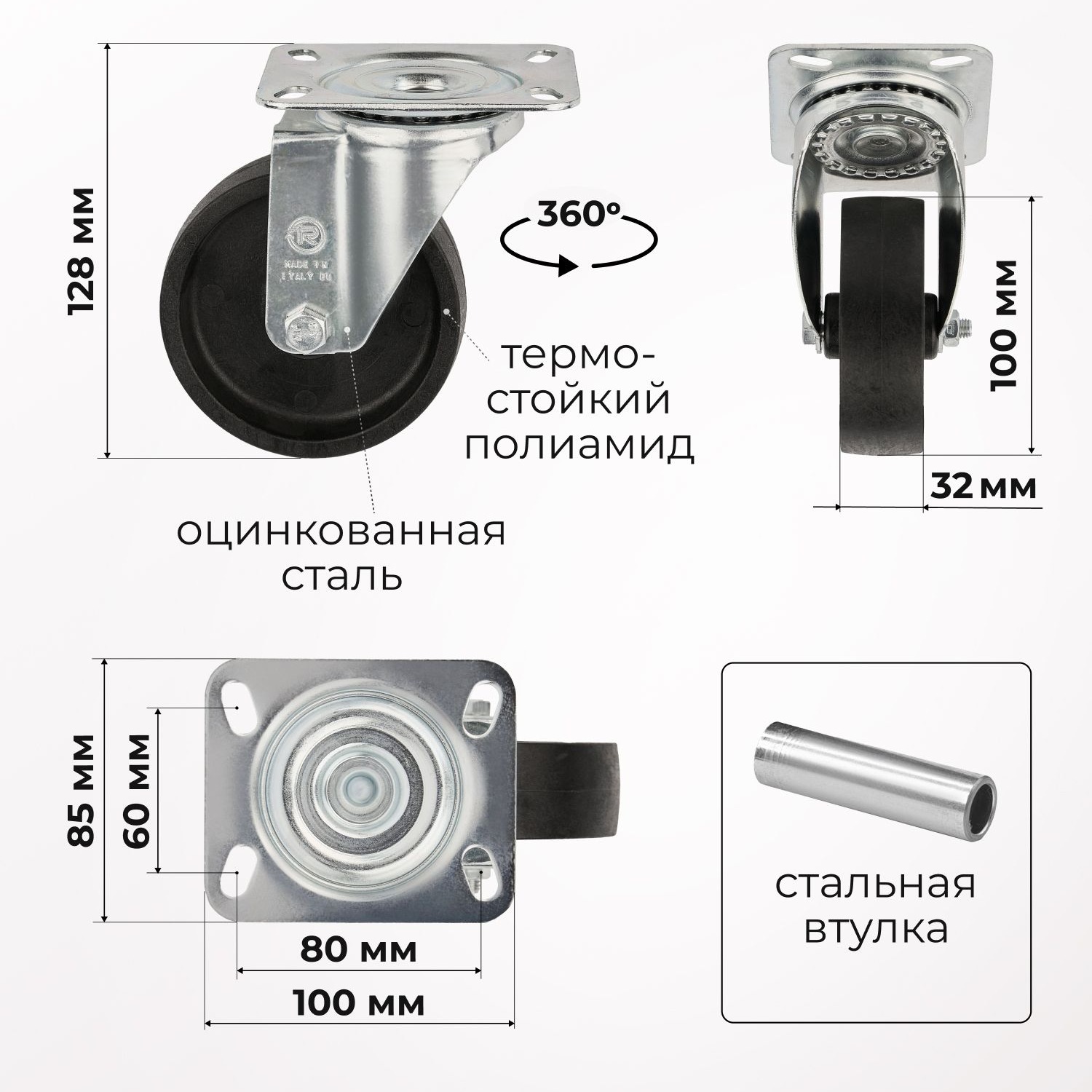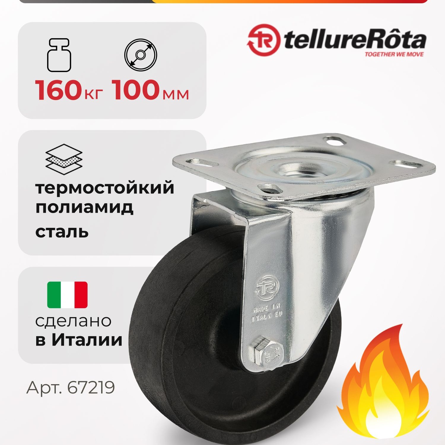 Колесо термостойкое (100 мм; 160 кг) поворотное Tellure Rota, термостойкий полиамид до 250°С 67219