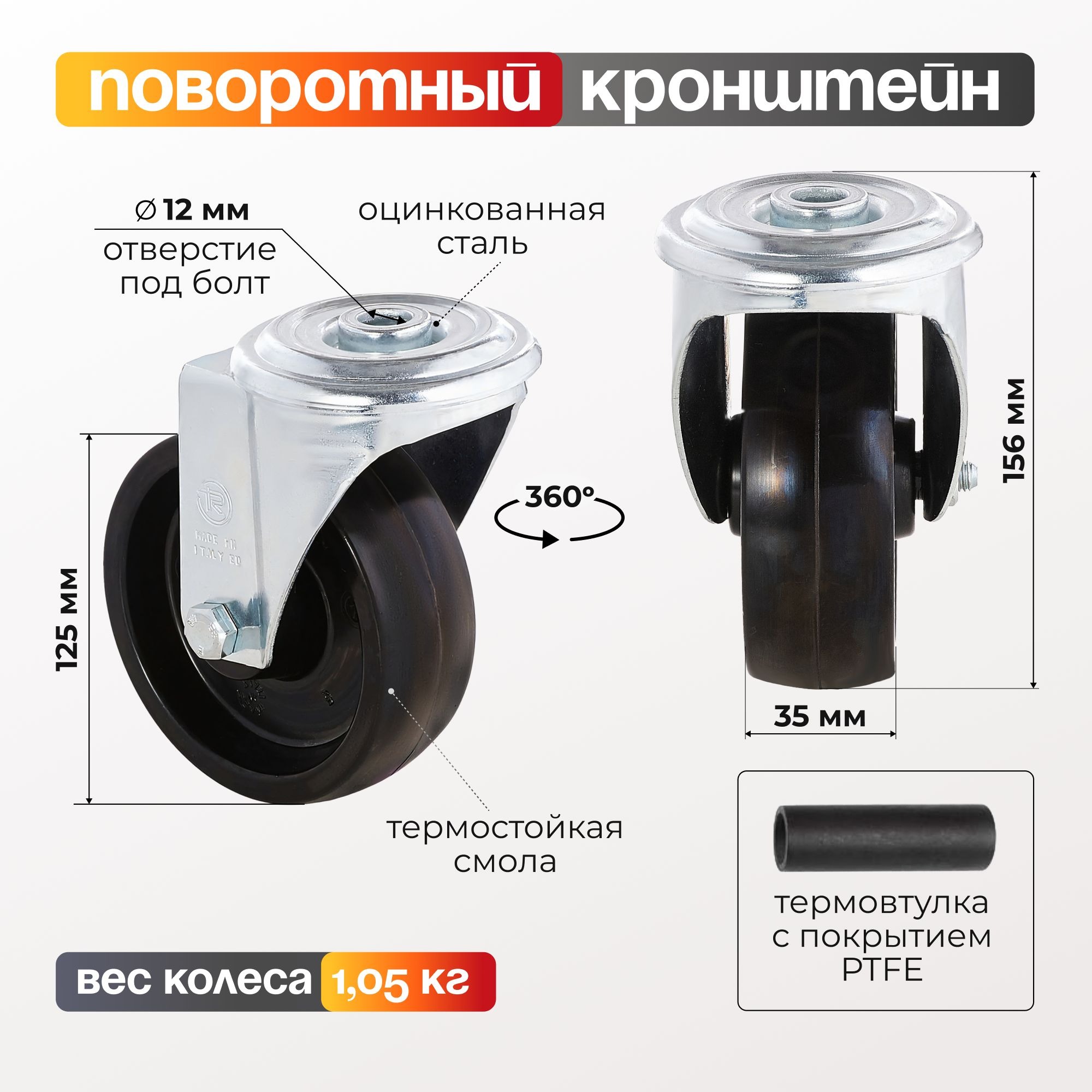 Колесо термостойкое (125 мм; 220 кг) поворотное Tellure Rota, фенольное до 300°С 677103