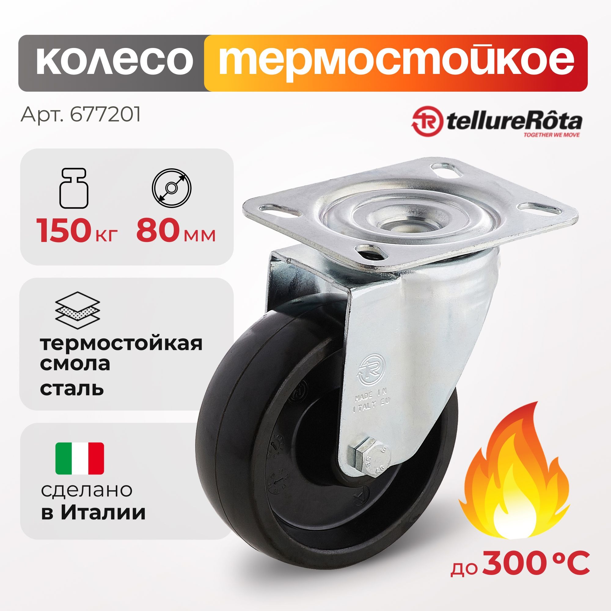 Колесо термостойкое (80 мм; 150 кг) поворотное Tellure Rota, фенольное до 300°С, инновационная втулка 677201