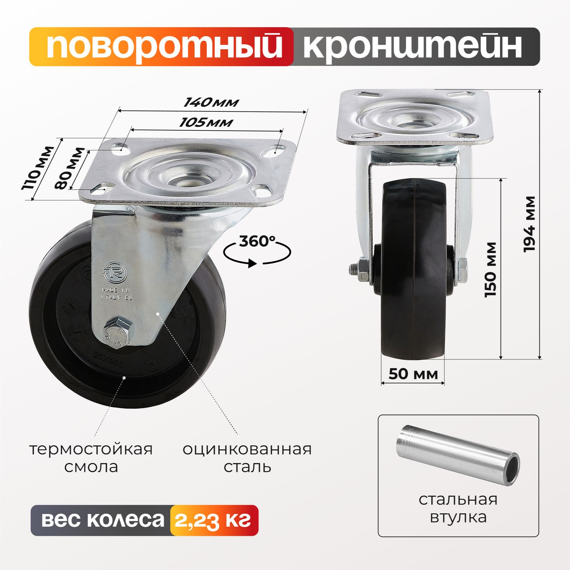 Колесо термостойкое (150 мм; 300 кг) поворотное Tellure Rota, фенольное до 300°С 677314