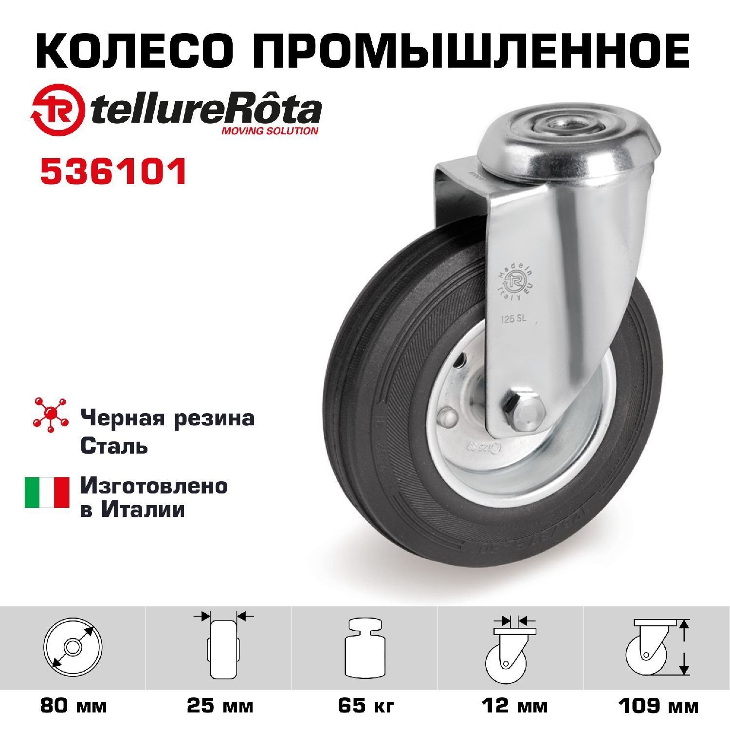 Колесо промышленное (80 мм, 65 кг) под ось Tellure Rota, черная резина, сталь 533121