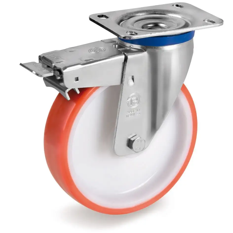 Колесо промышленное поворотное с тормозом (200 мм; 450 кг) полиуретан / полиамид, усиленный кронштейн М 606806