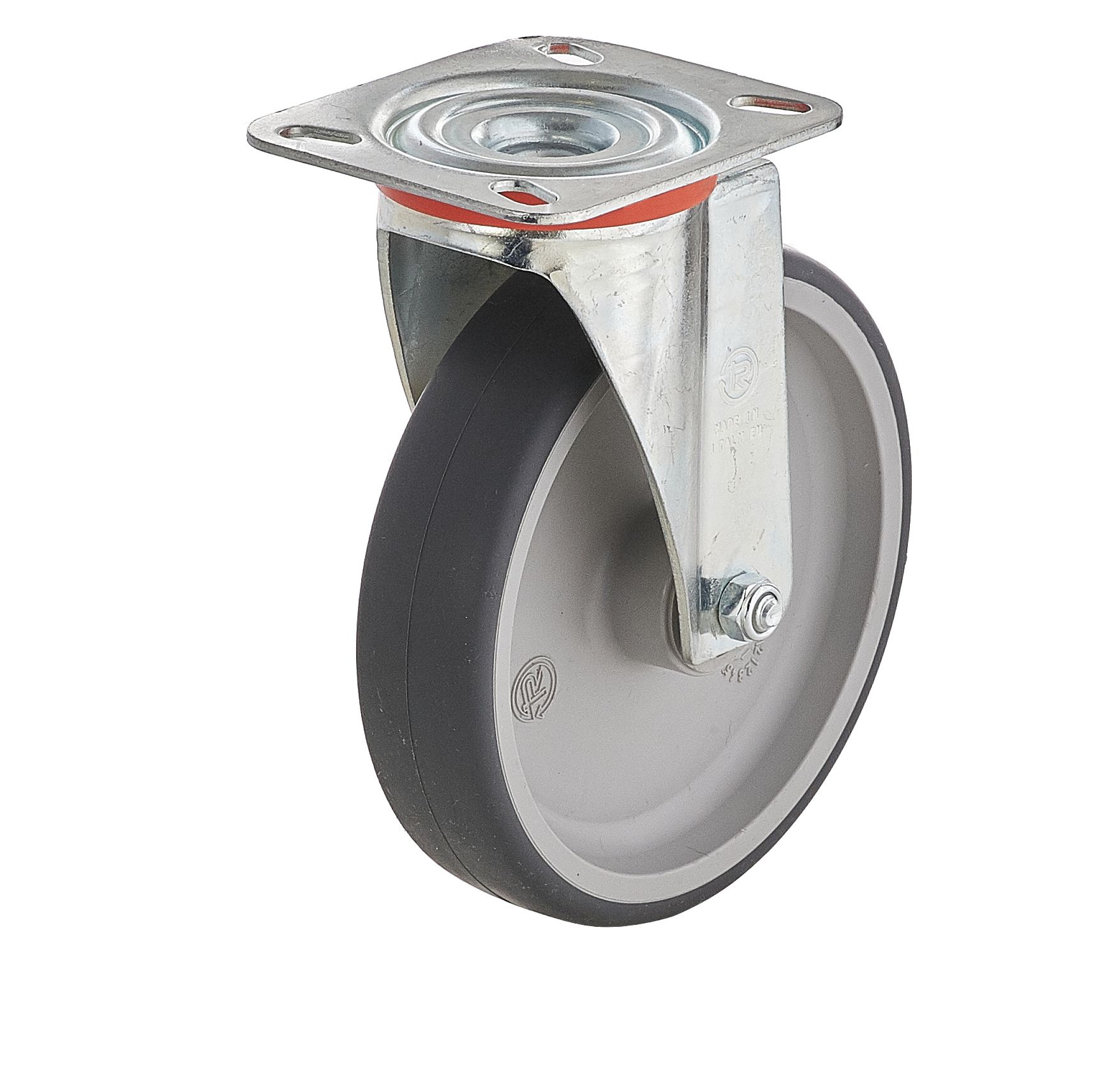 Колесо промышленное поворотное (200 мм; 225 кг) Tellure Rota, термопластичная серая резина, полипропилен 714206