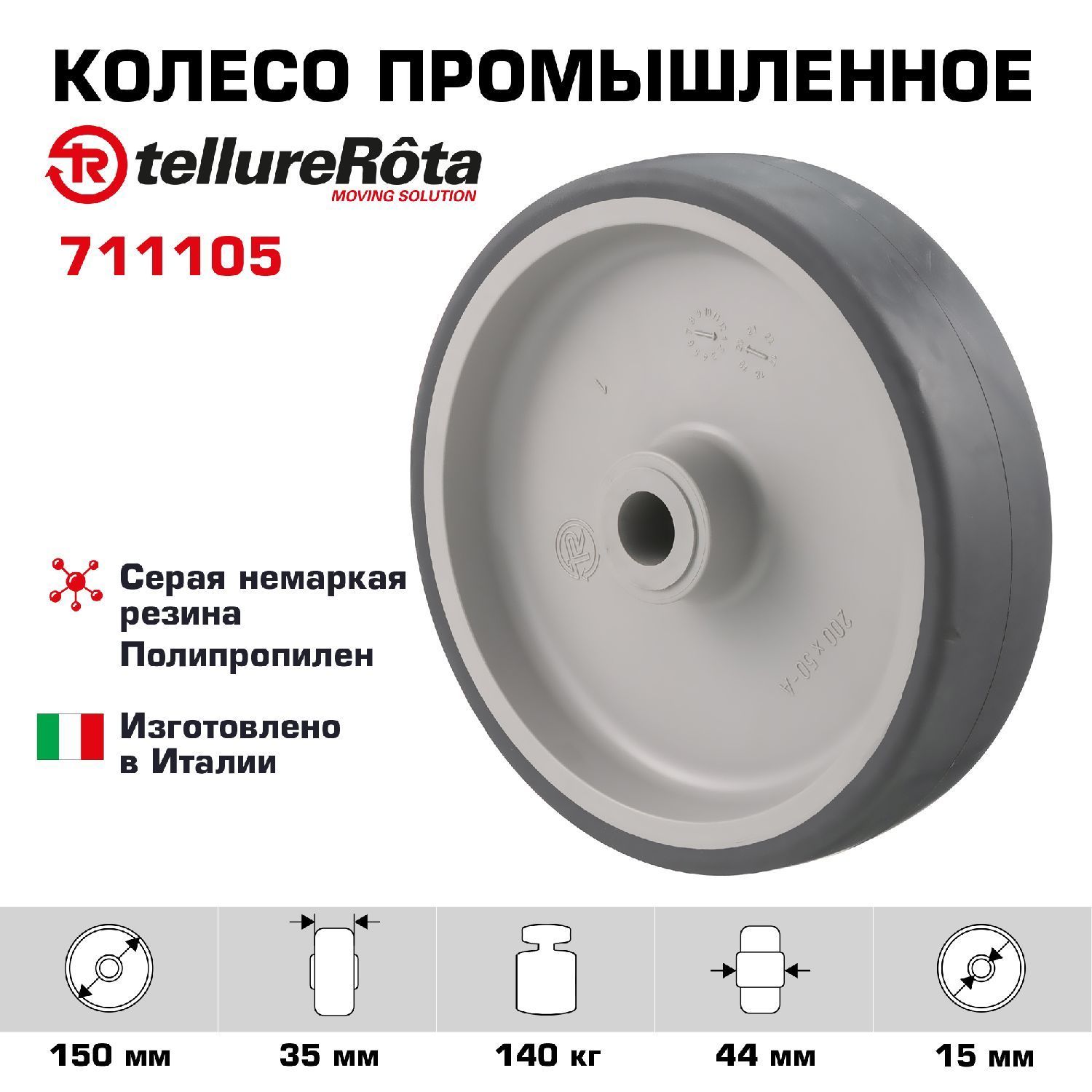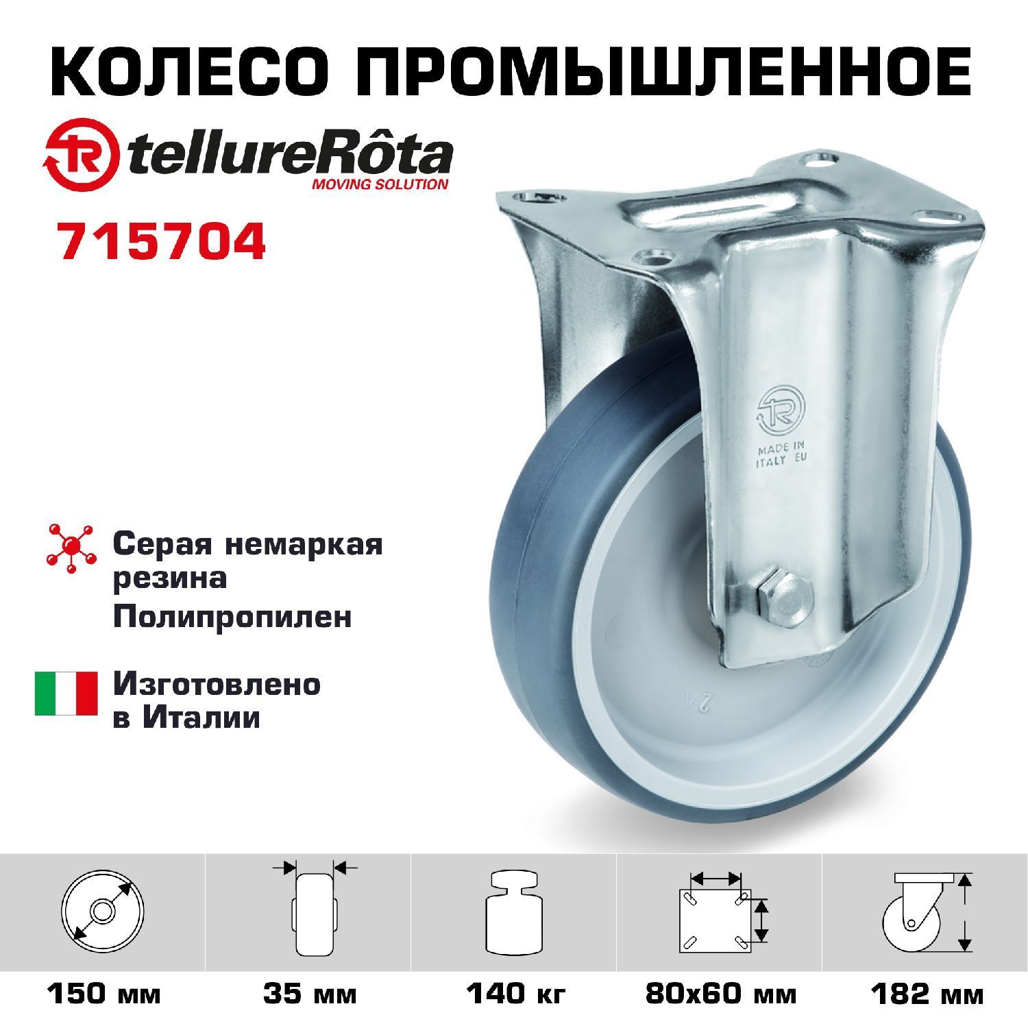 Колесо промышленное неповоротное (150 мм; 180 кг) Tellure Rota, термопластичная серая резина, полипропилен 715711