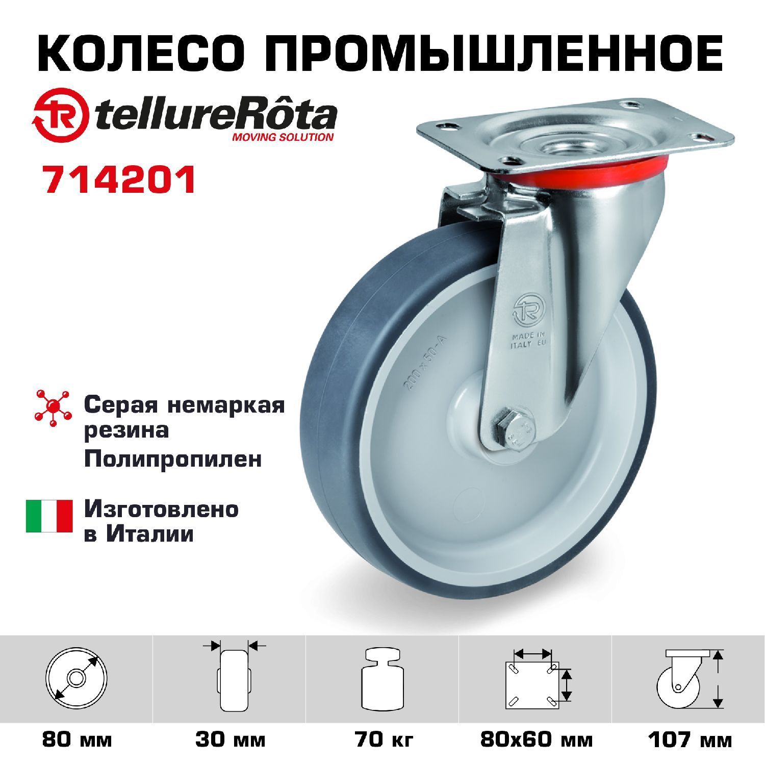 Колесо промышленное поворотное (80 мм; 70 кг) Tellure Rota, термопластичная серая резина, полипропилен 714201