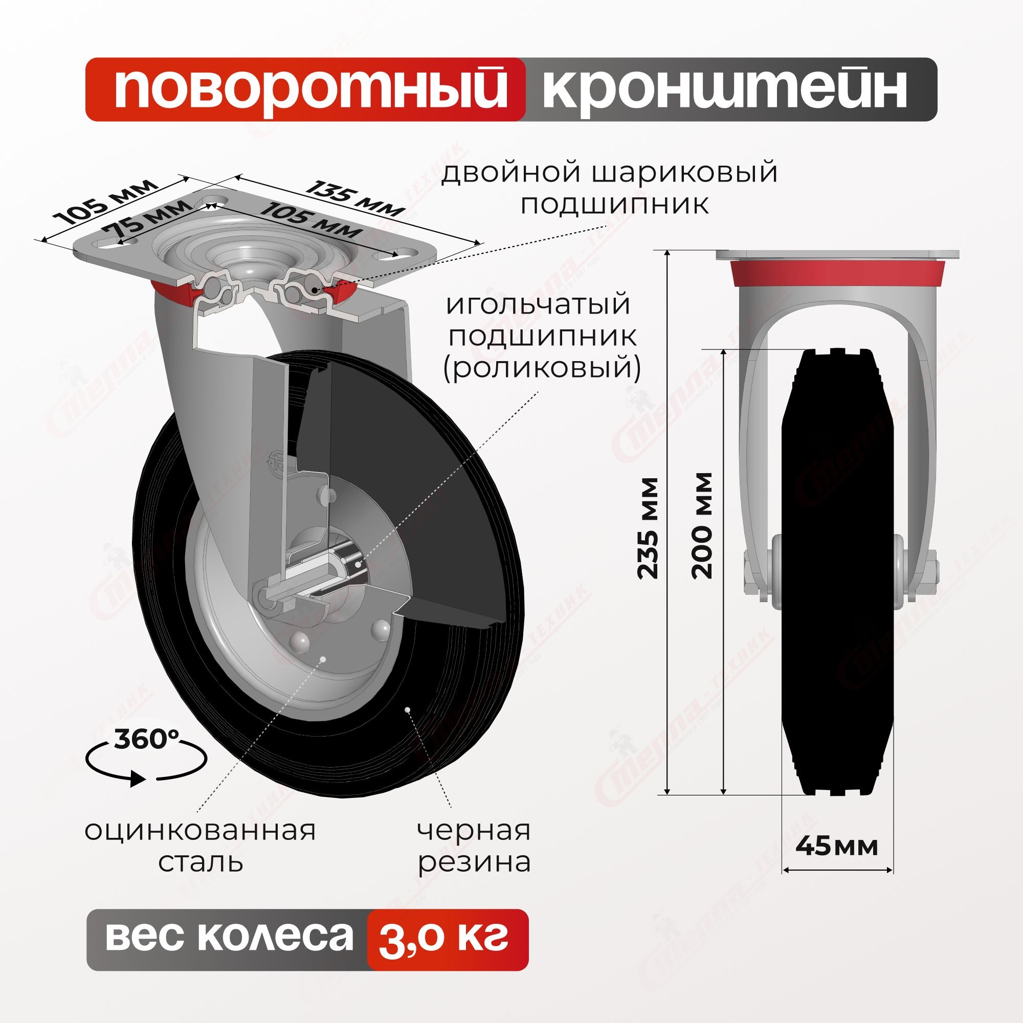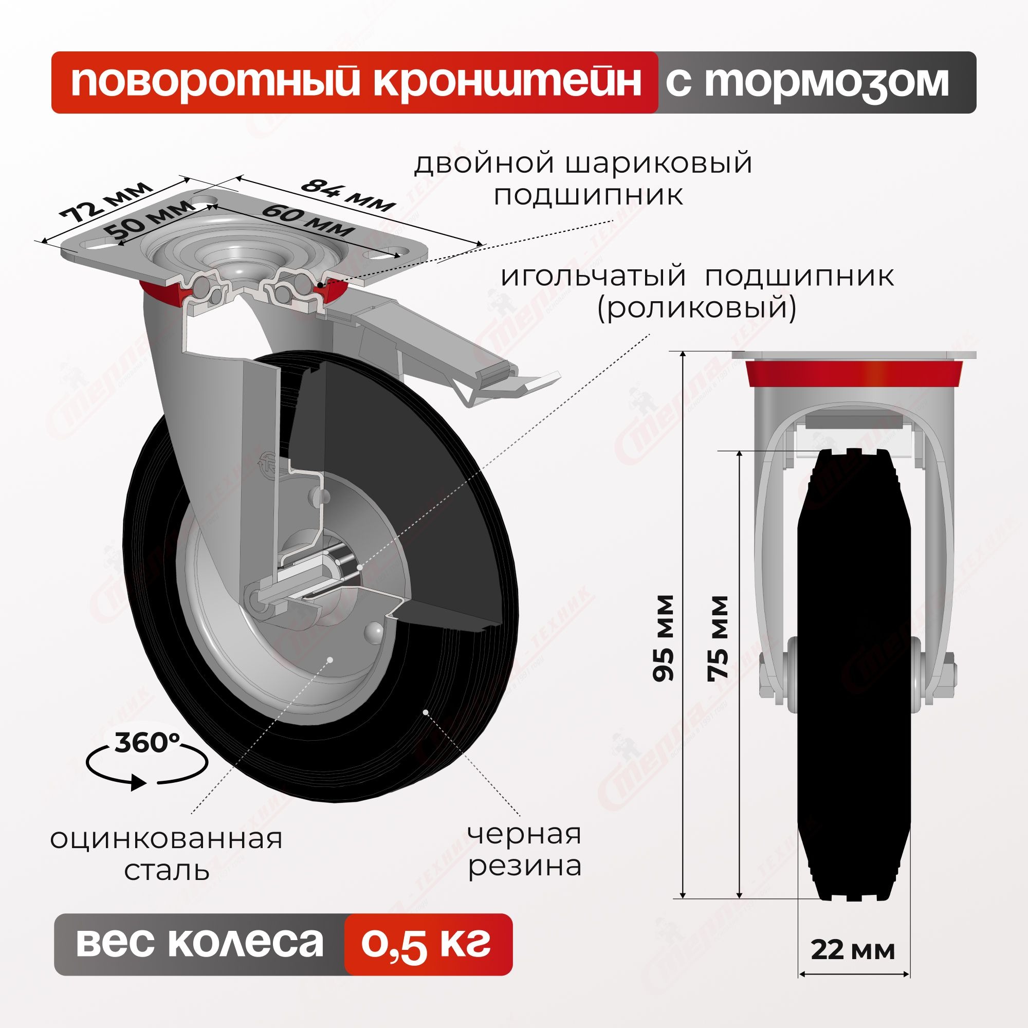 Колесо промышленное (160 мм, 145 кг) поворотное Стелла-техник 4001-160
