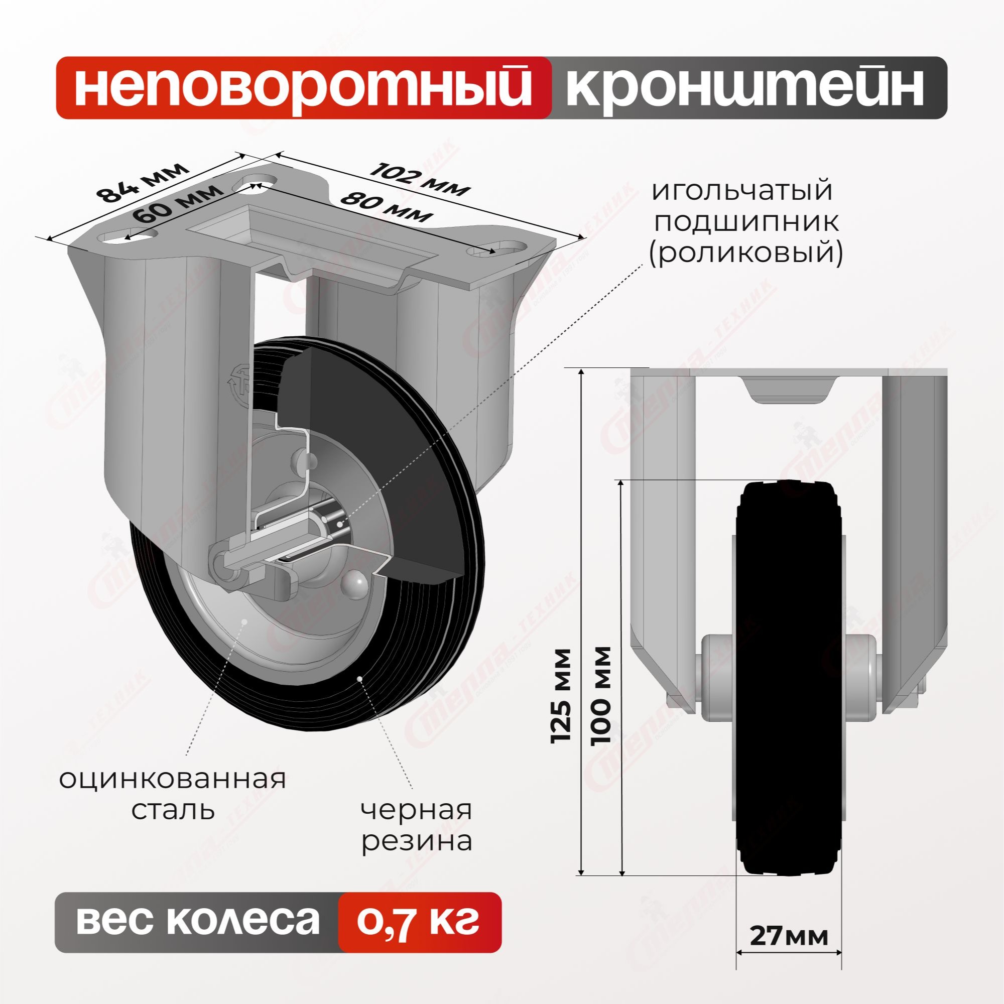 Колесо промышленное (100 мм, 70 кг) неповоротное Стелла-техник 4002-100