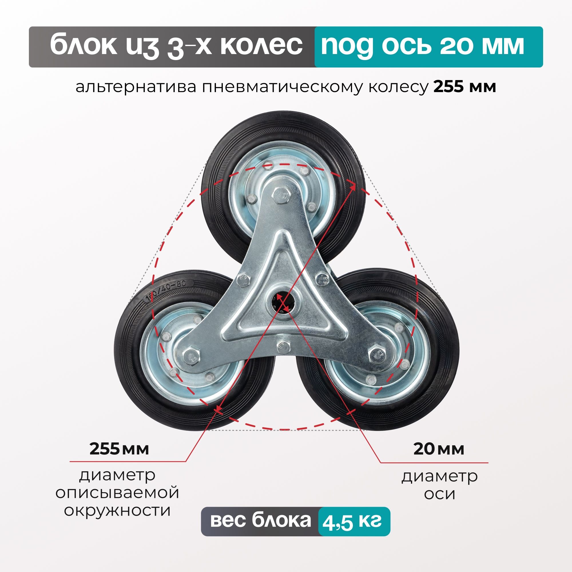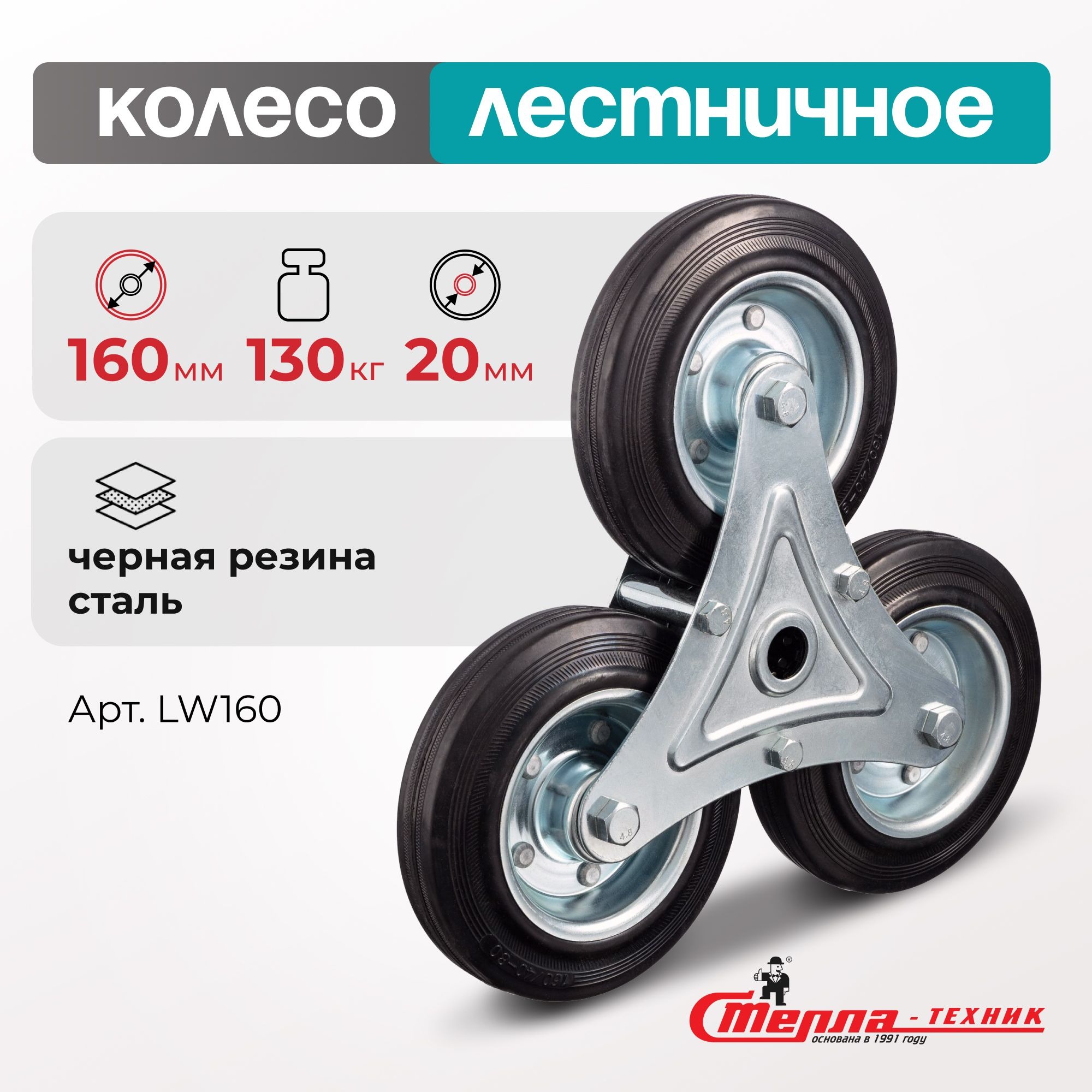 Колесо промышленное трехопорное (160 мм, 130 кг) под ось Стелла-техник LW160