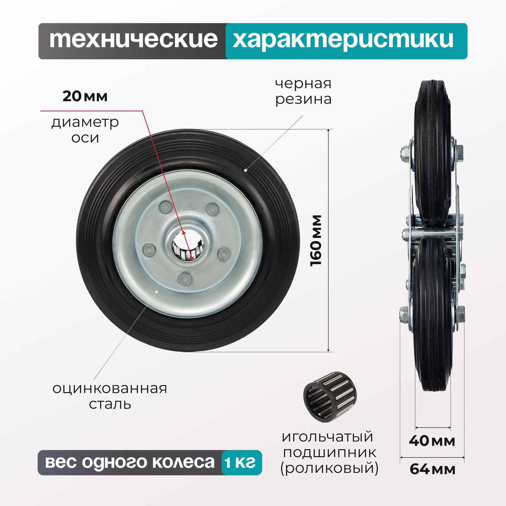 Колесо промышленное (160 мм, 145 кг) под ось Стелла-техник 4000-160