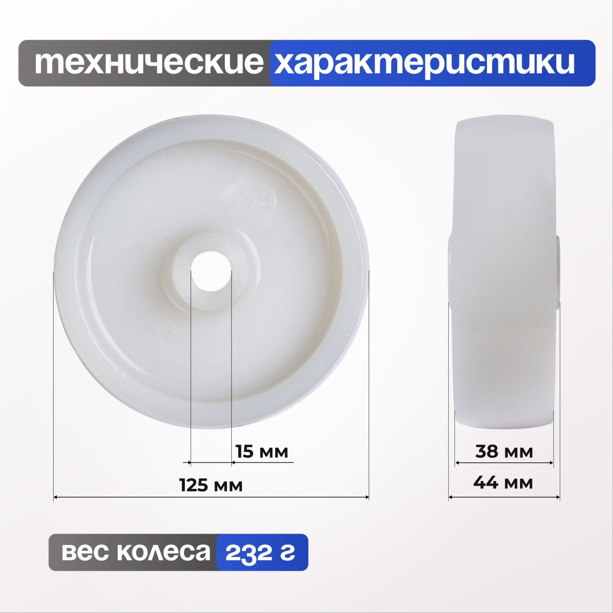 Колесо промышленное полиамидное (125 мм, 400 кг) под ось Стелла-техник 8800-125