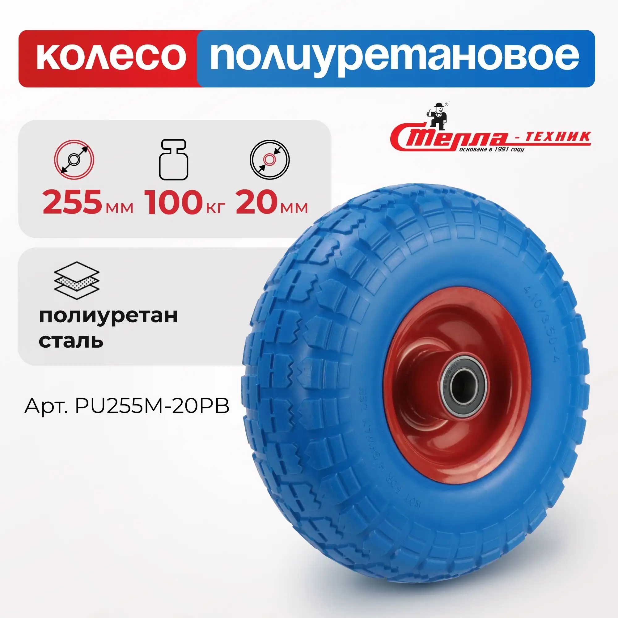 Колесо пенополиуретановое для тачки (255 мм, 100 кг, ось 20 мм) Стелла-техник 1120-255-3