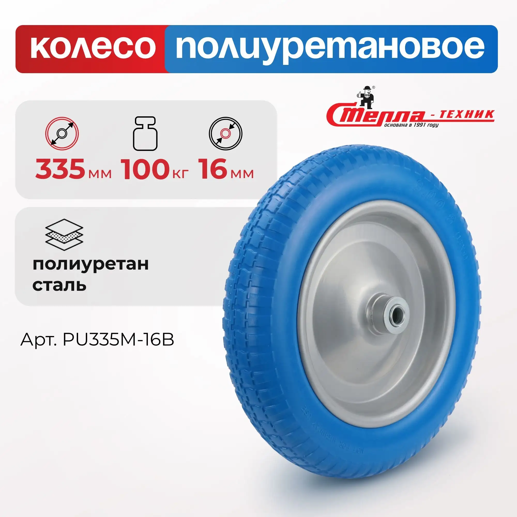 Колесо для тачки (335 мм, 100 кг, ось 16 мм) Стелла-техник PU335M-16B