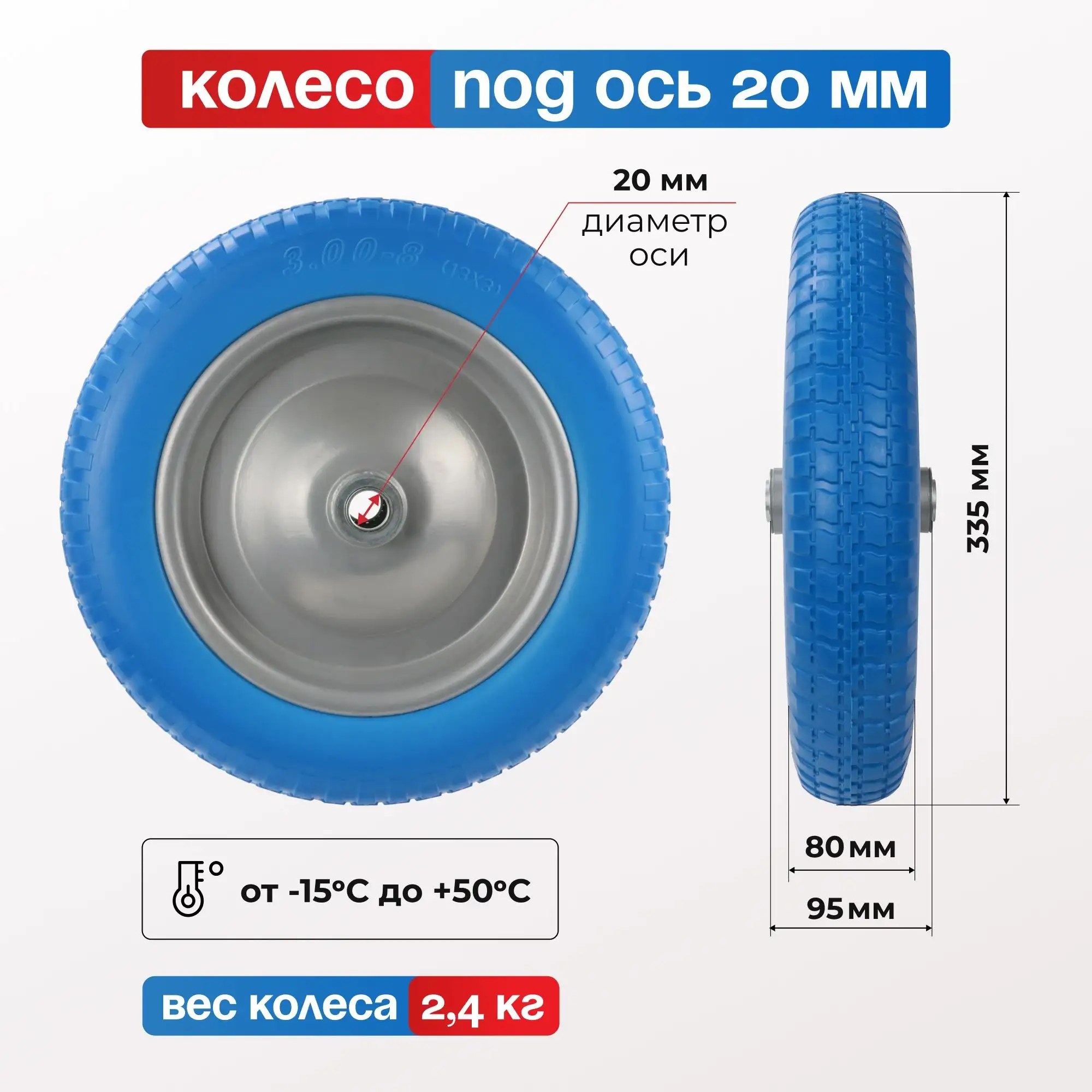 Колесо для тачки (335 мм, 100 кг, ось 20 мм) Стелла-техник PU335M-20B
