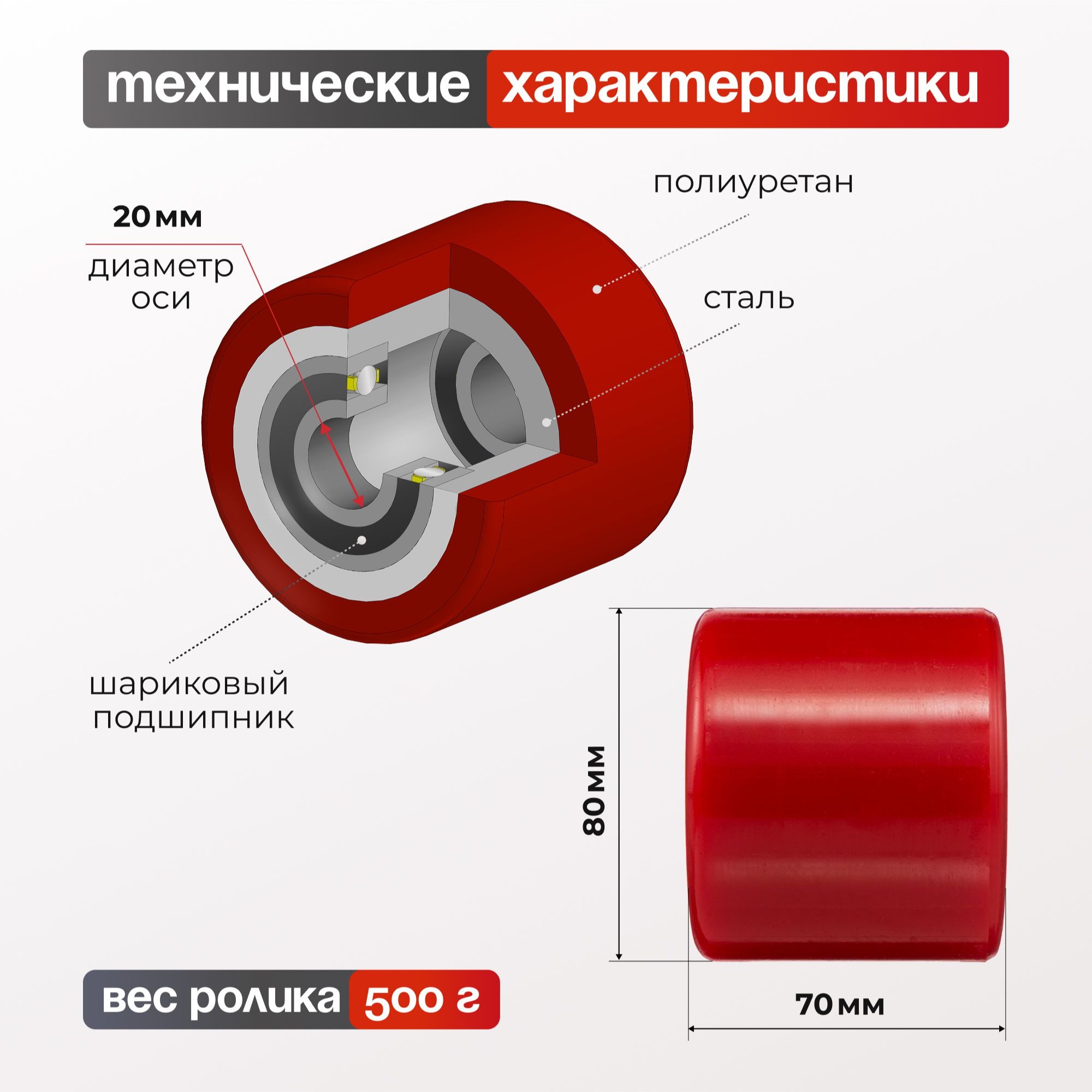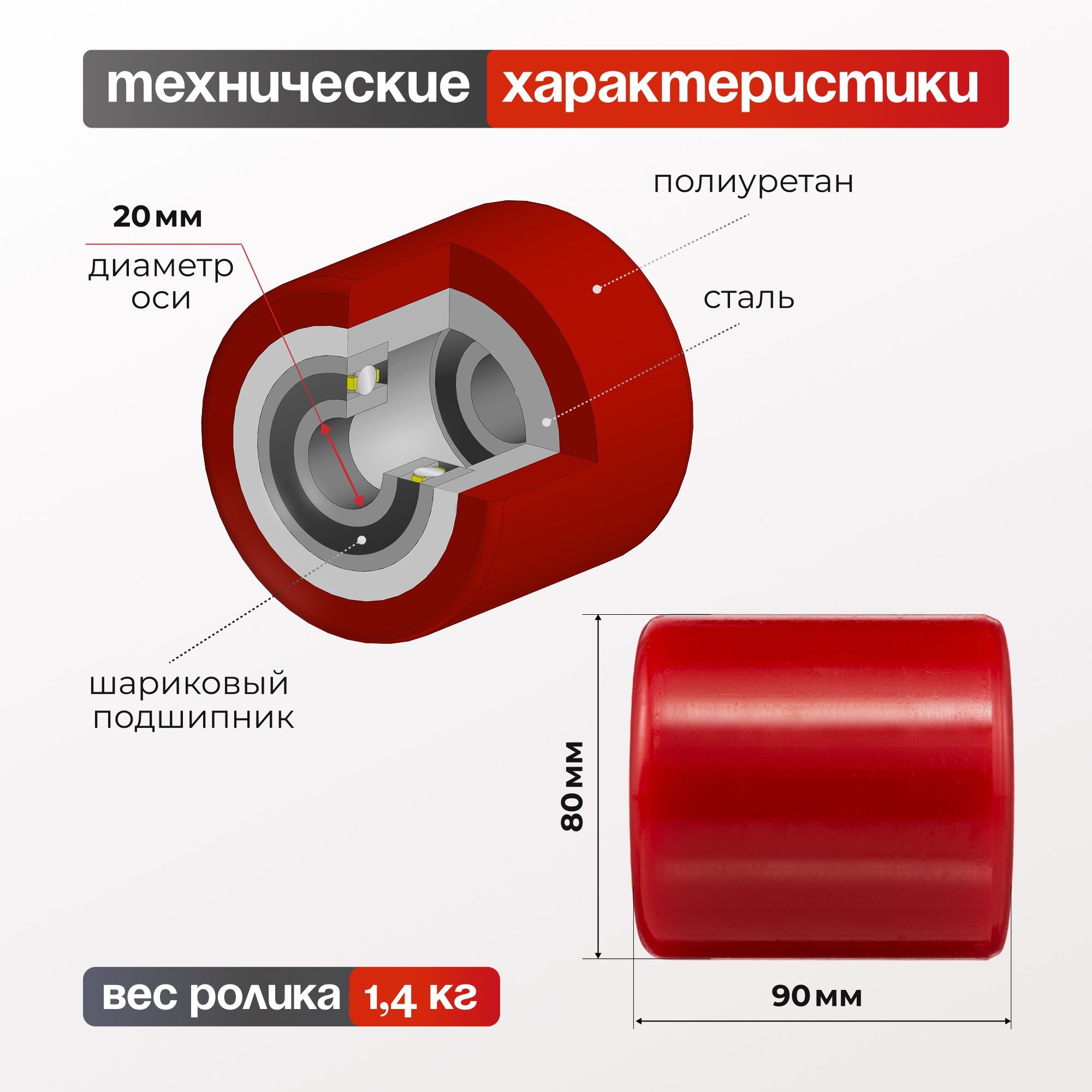 Ролик полиуретановый (80х90 мм, 500 кг) Стелла-техник R-02-90
